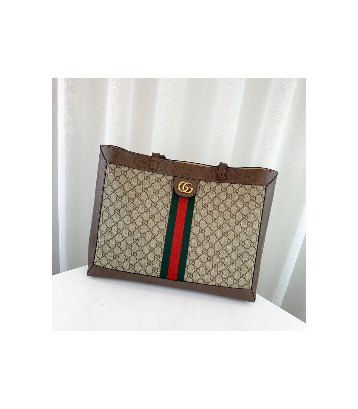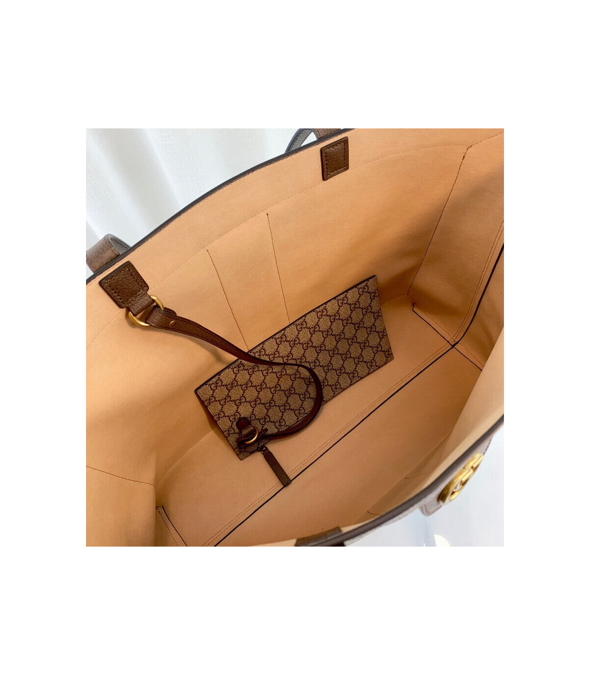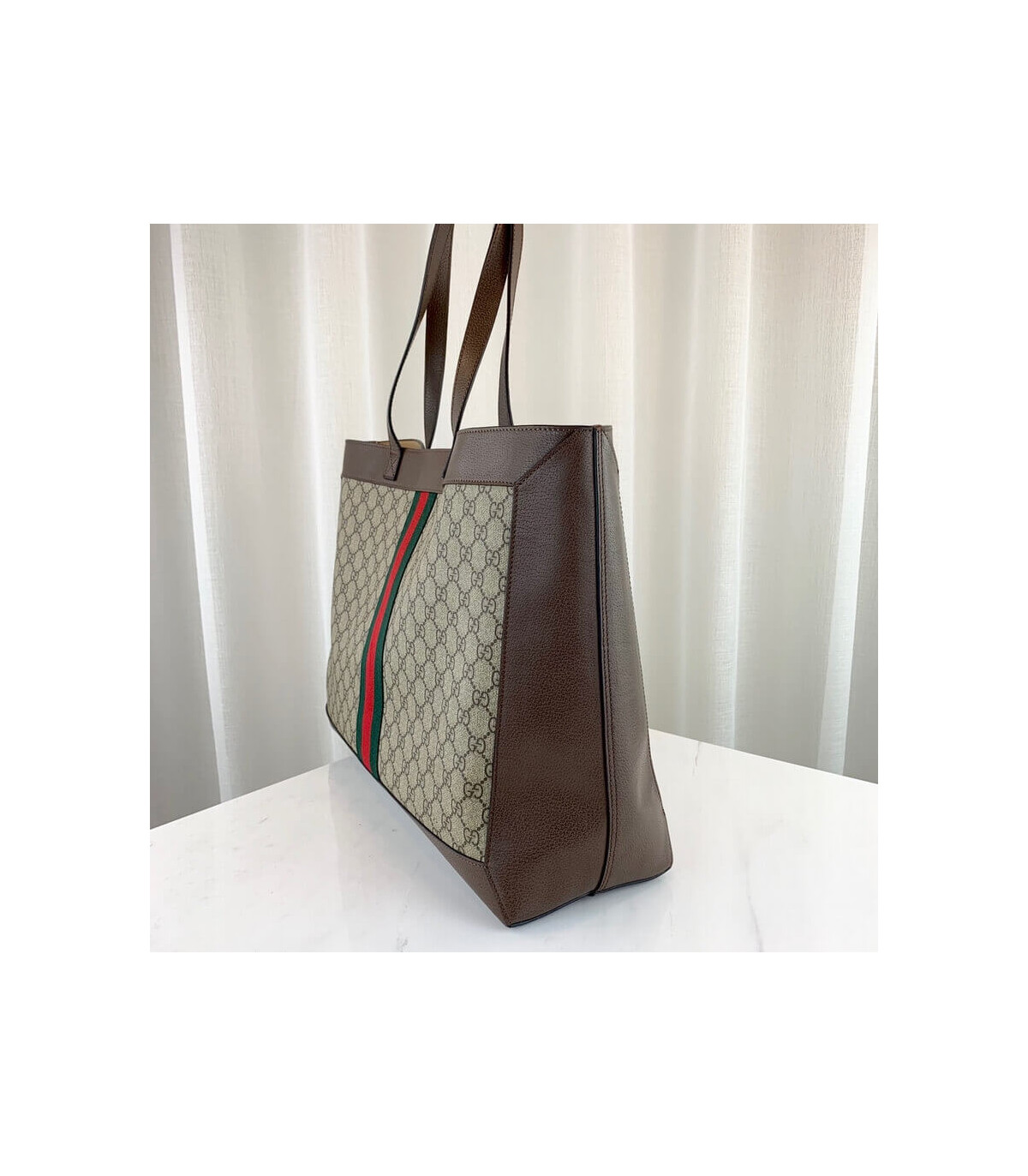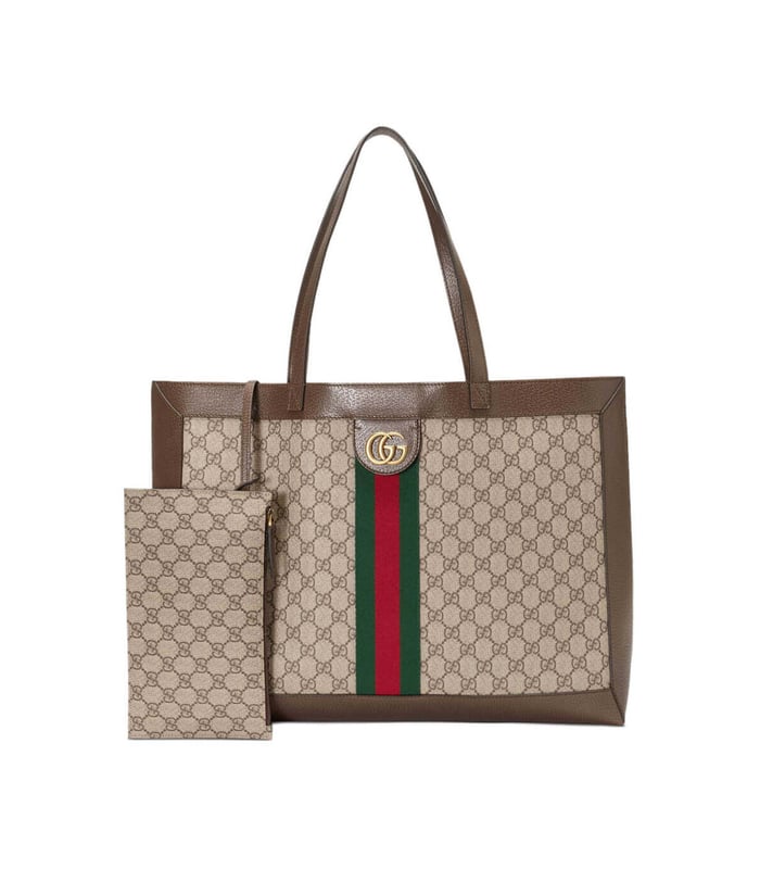 A classic combination of the House’s most recognizable elements—the GG motif and Web stripe—the world of Ophidia continues to evolve, incorporating new shapes and silhouettes. The wide tote is made from supple soft GG Supreme canvas, trimmed with textured leather and topped with Double G hardware.