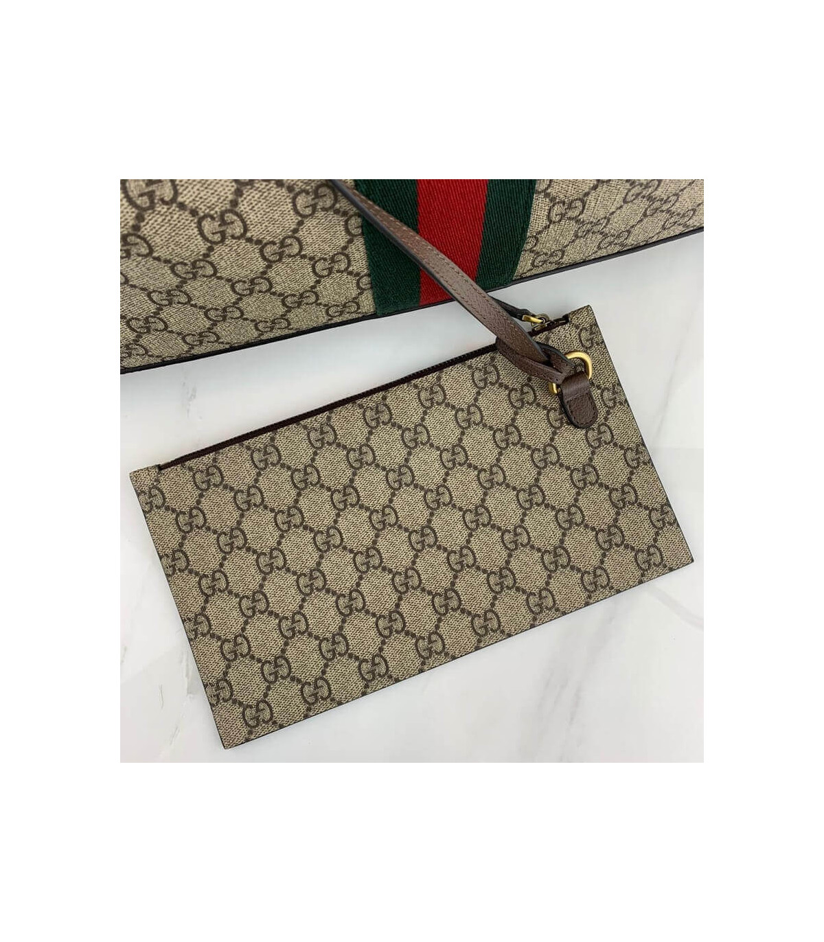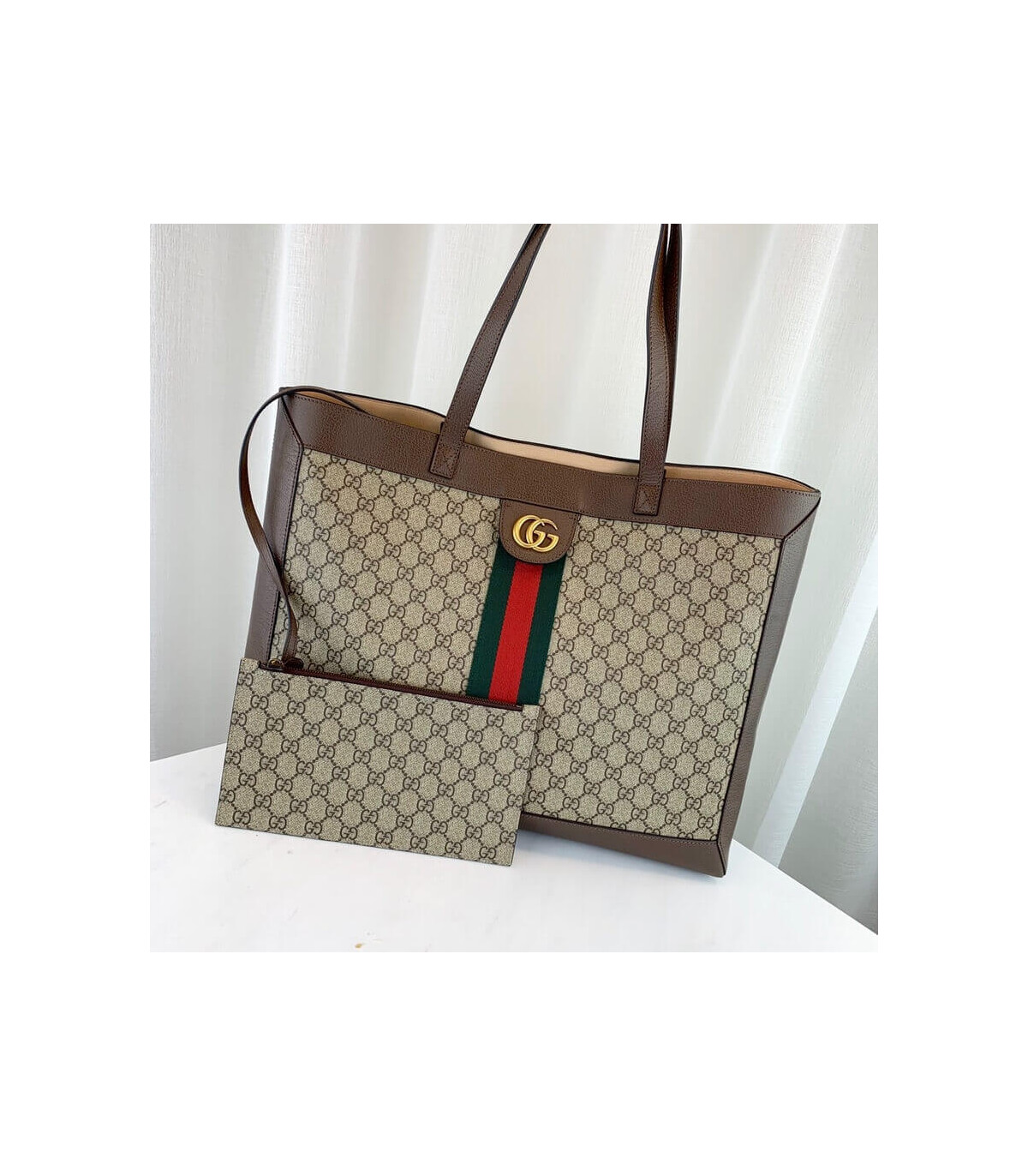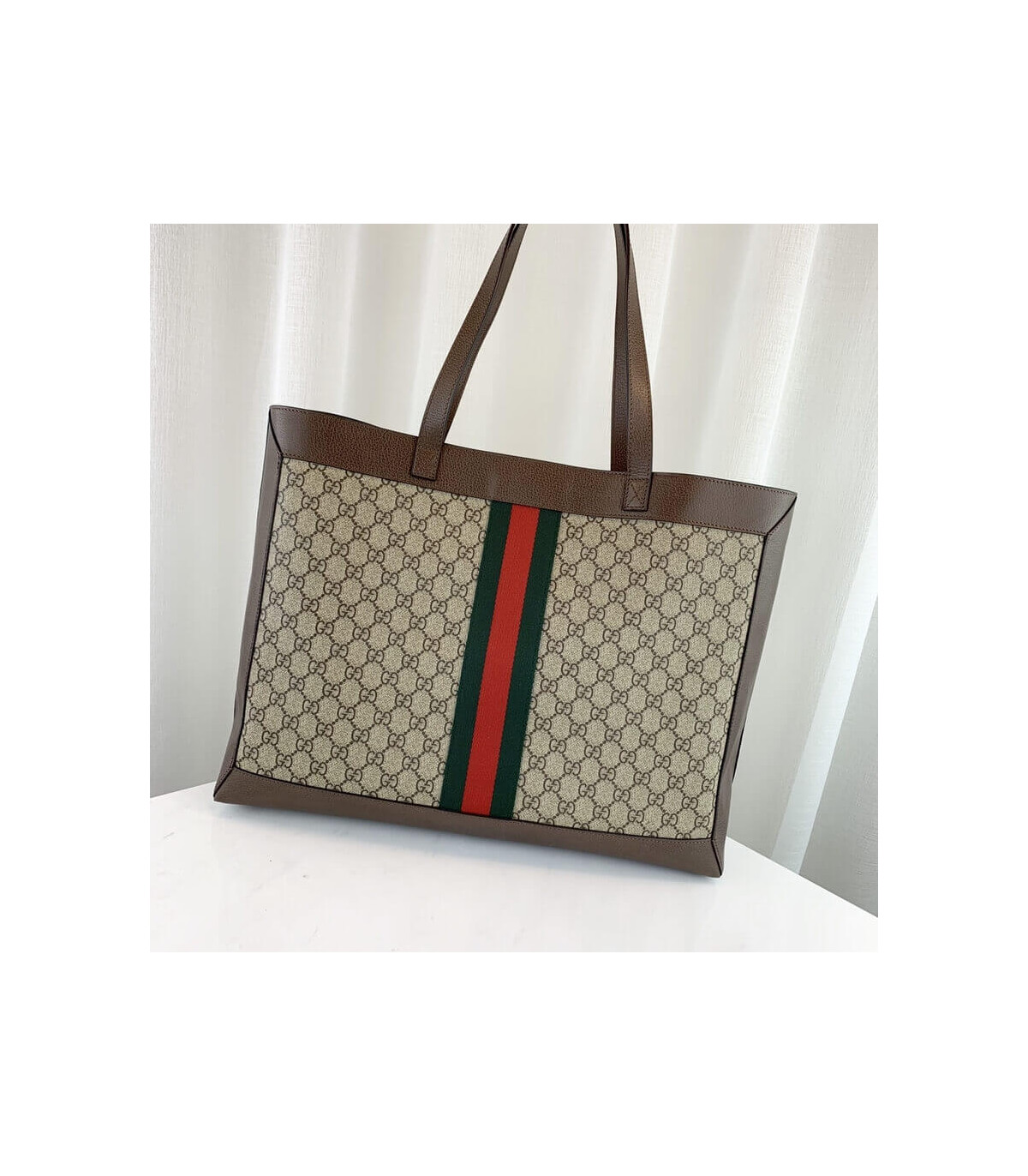 A classic combination of the House’s most recognizable elements—the GG motif and Web stripe—the world of Ophidia continues to evolve, incorporating new shapes and silhouettes. The wide tote is made from supple soft GG Supreme canvas, trimmed with textured leather and topped with Double G hardware.