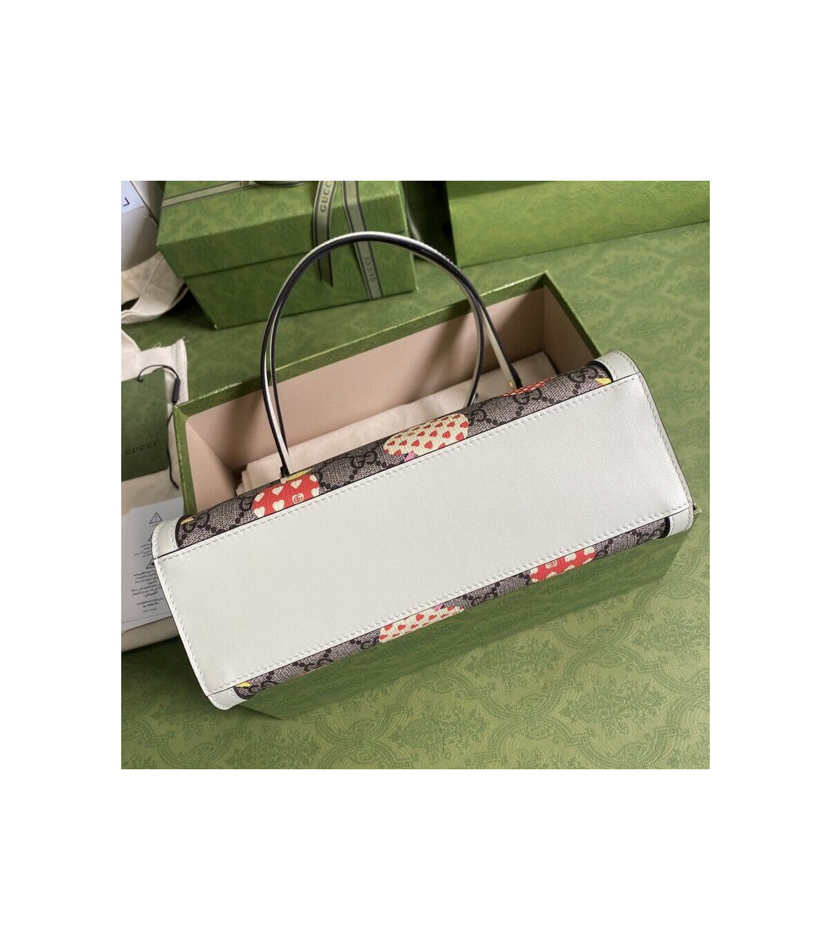 – Beige and ebony GG Supreme canvas with Gucci heart apple pattern, low environmental impact