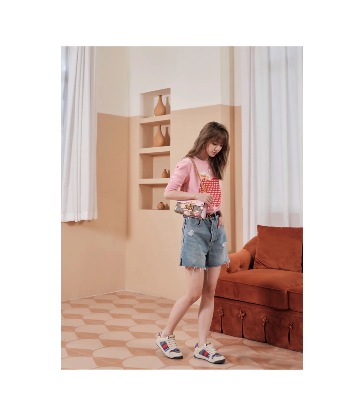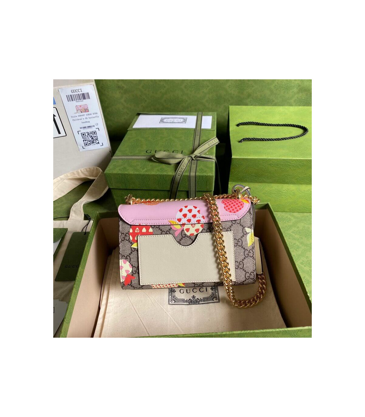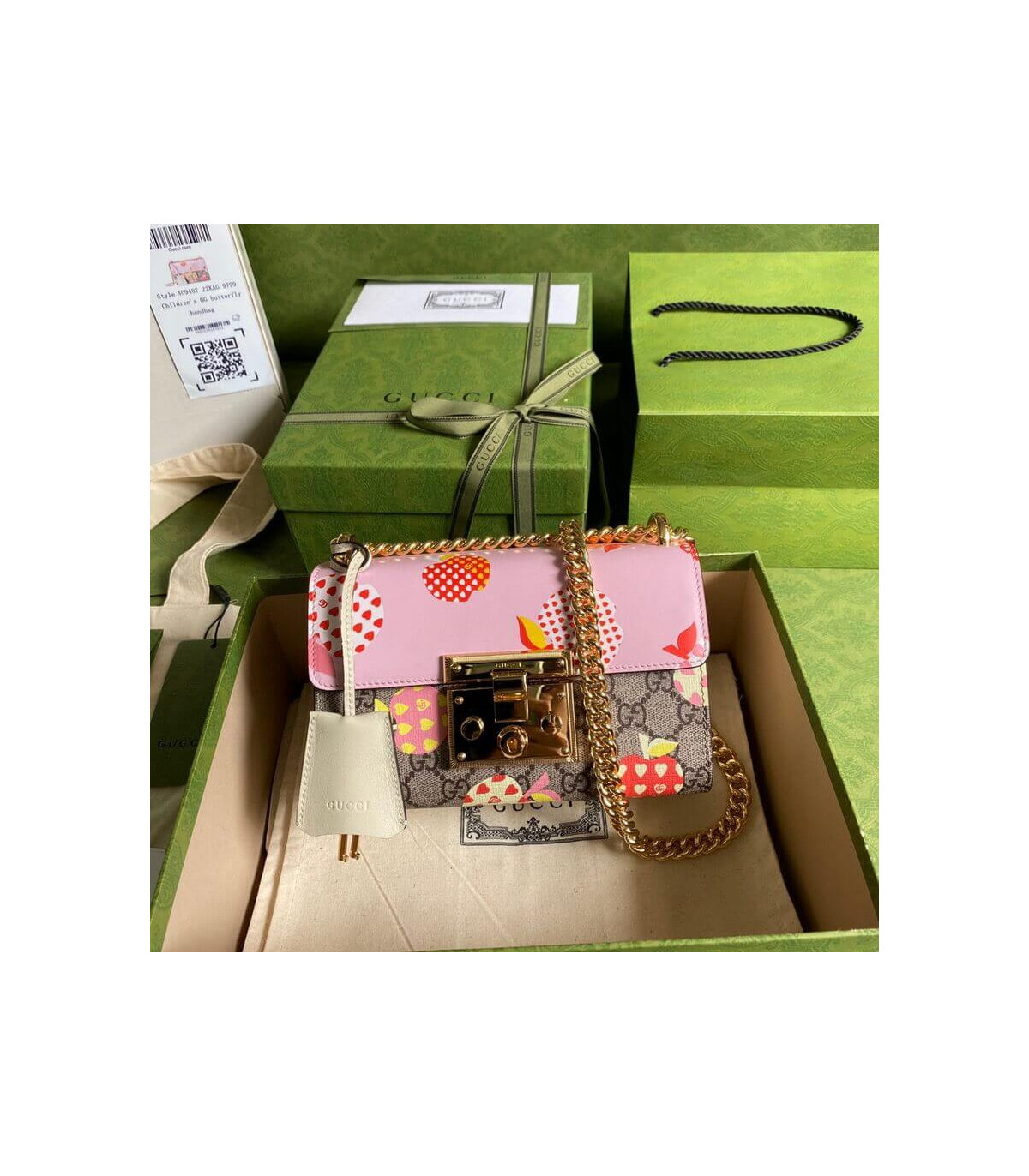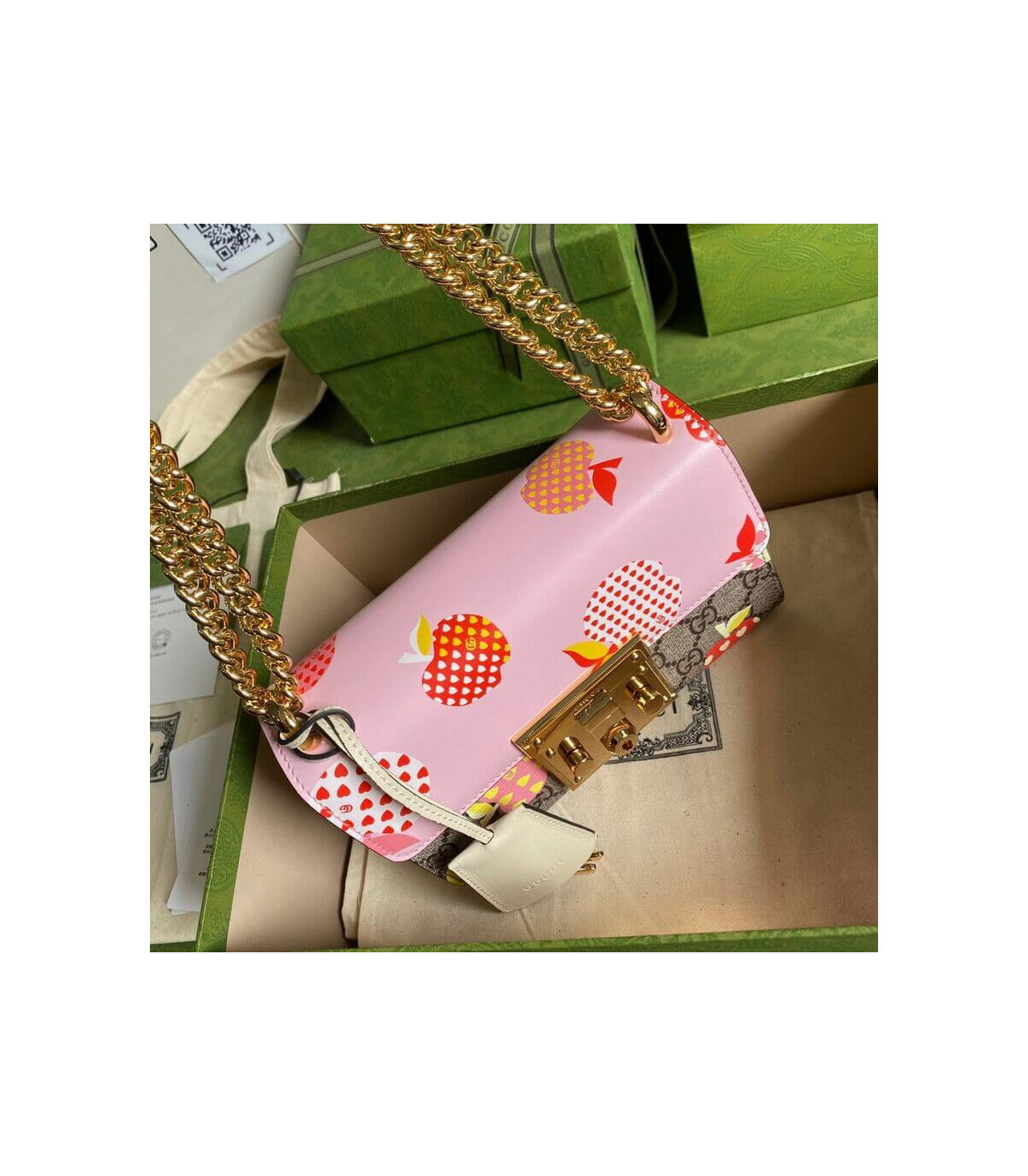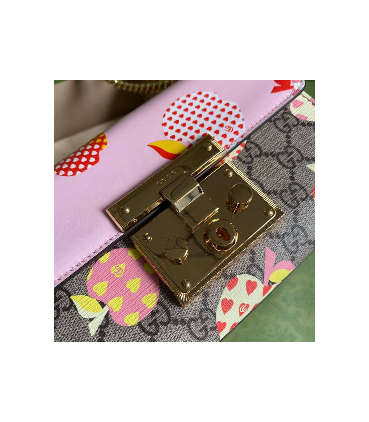 Home Shop All Bags Gucci Gucci Padlock Heart Apple Pattern Small Shoulder Bag Pink
