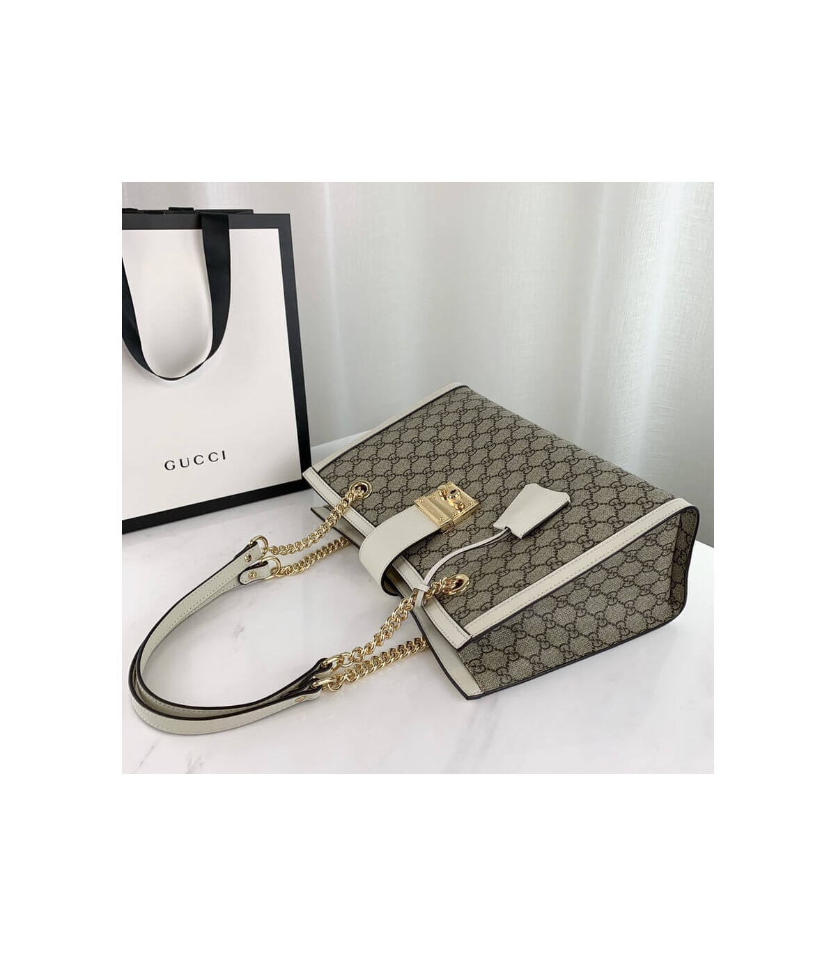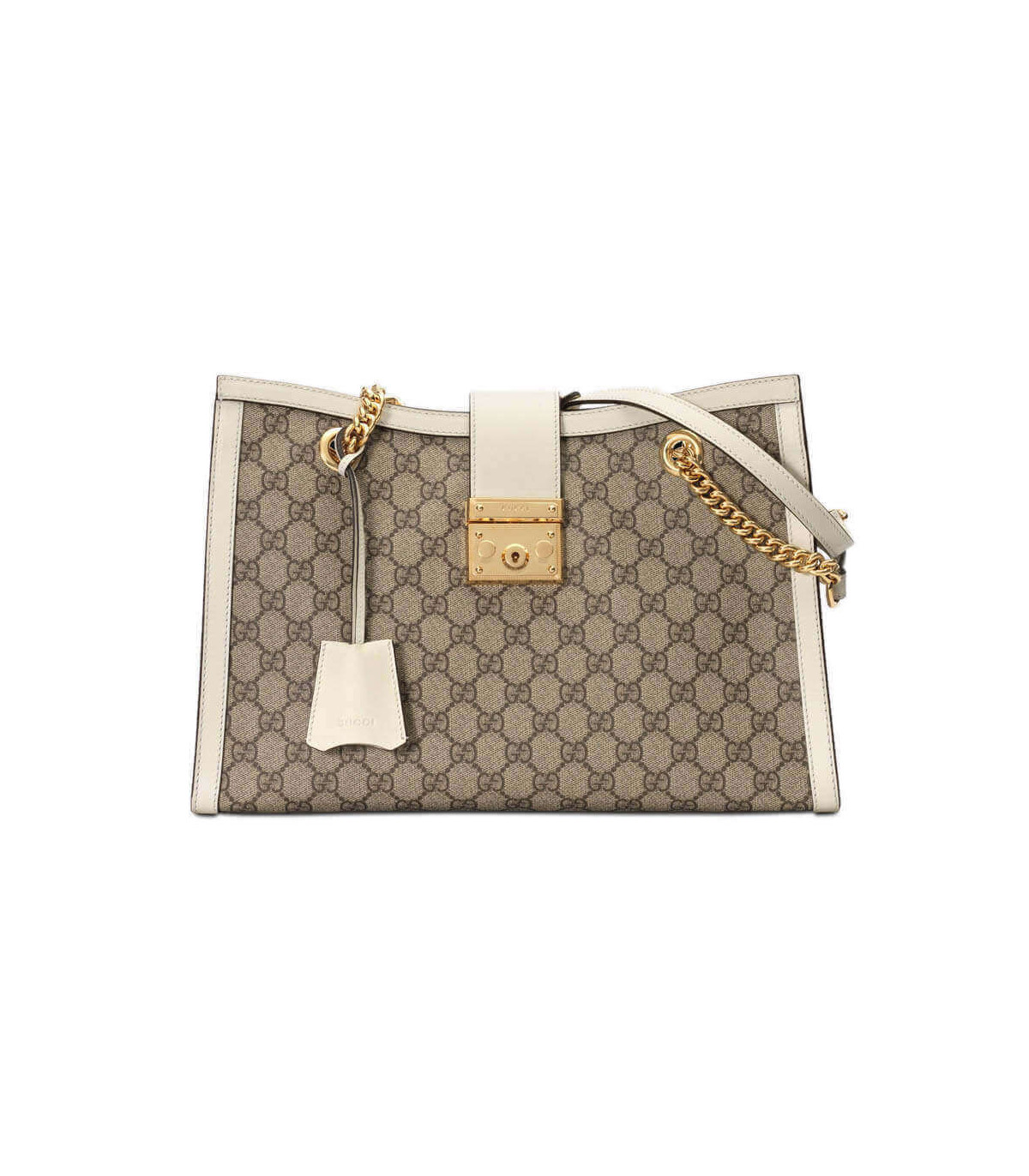 A structured shoulder bag in GG Supreme canvas with a strap that secures with a key lock closure pulled straight from the archives. The key is placed in a detachable leather key case.