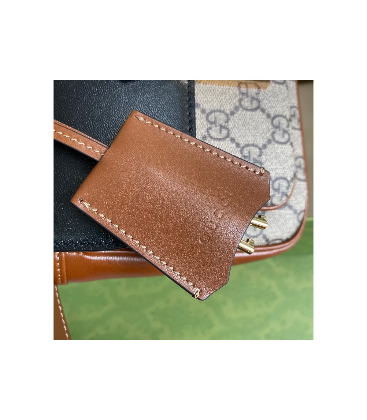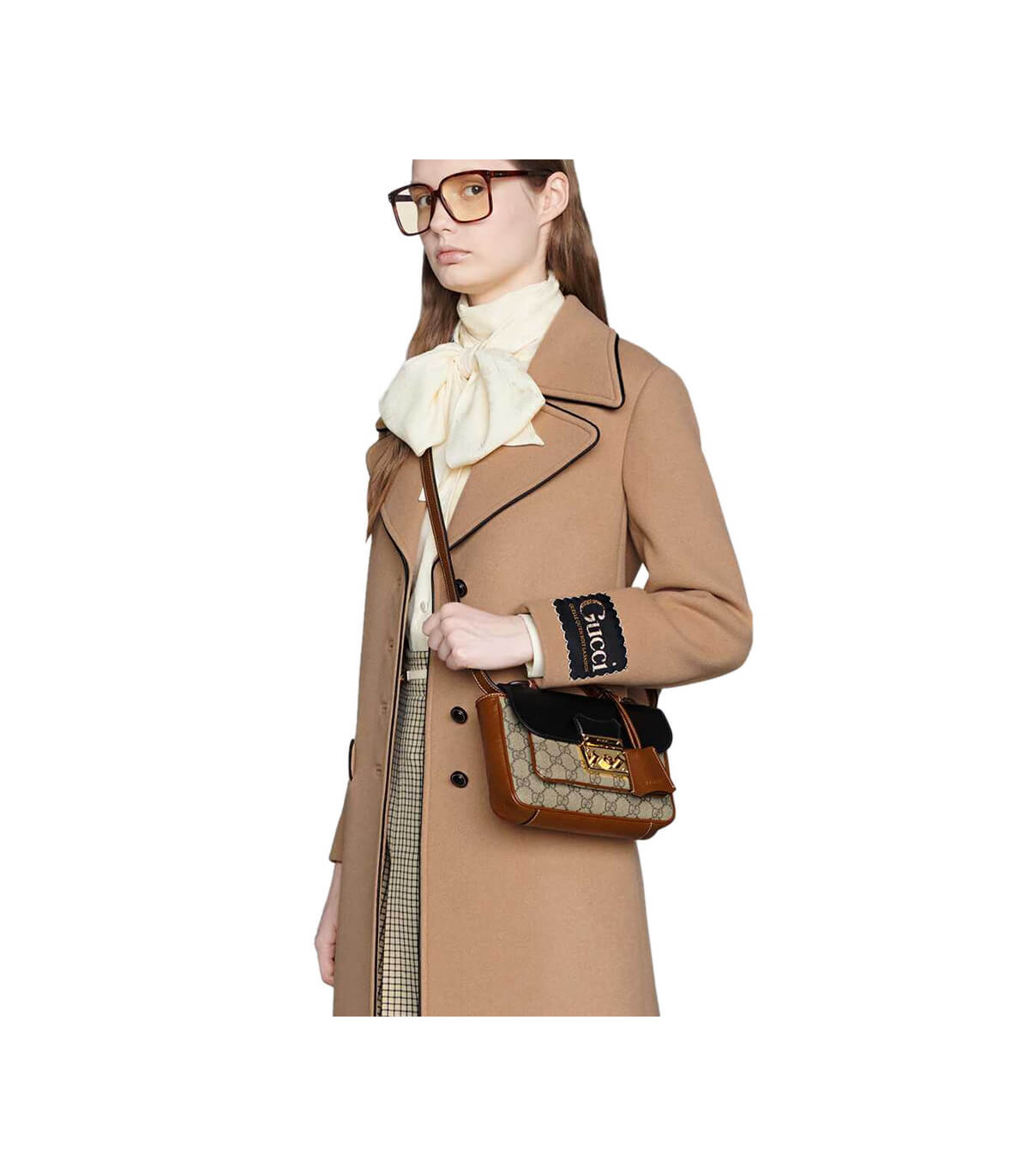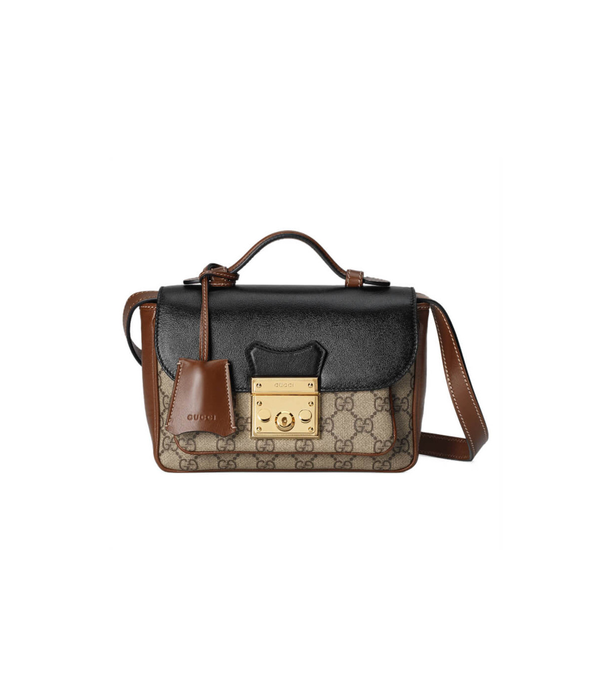 Inspired by a style from the archives, a mini version of the Padlock shoulder bag is introduced as a part of the Ouverture collection. Presented in a mix of white leather and GG Supreme canvas, the style is defined by the line’s signature key lock closure. A colourful orange leather trim completes the style.