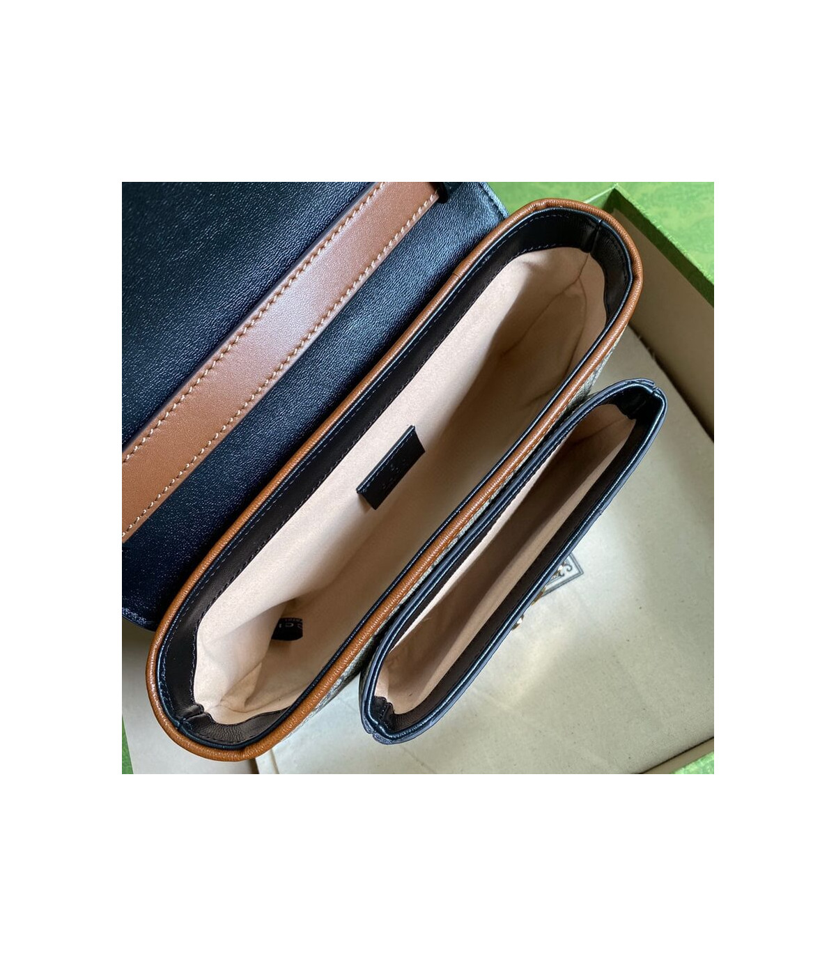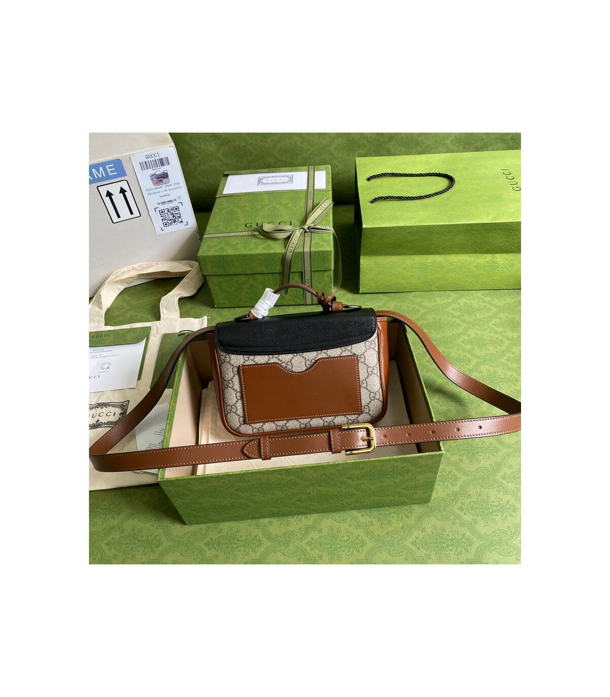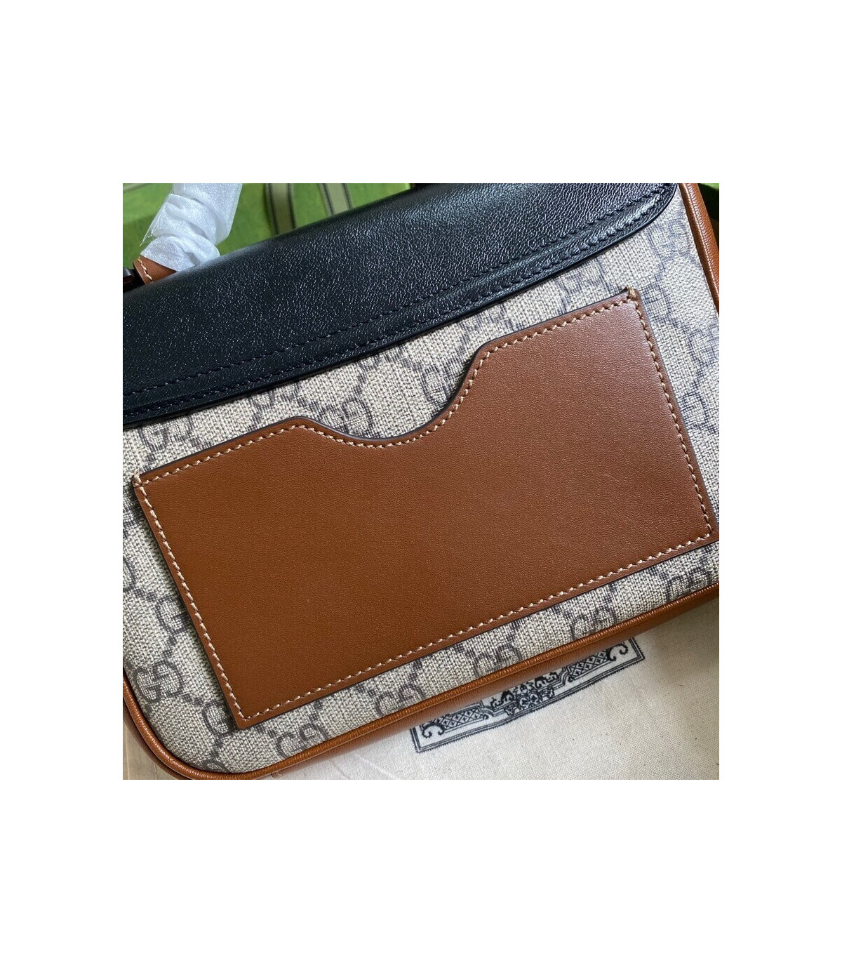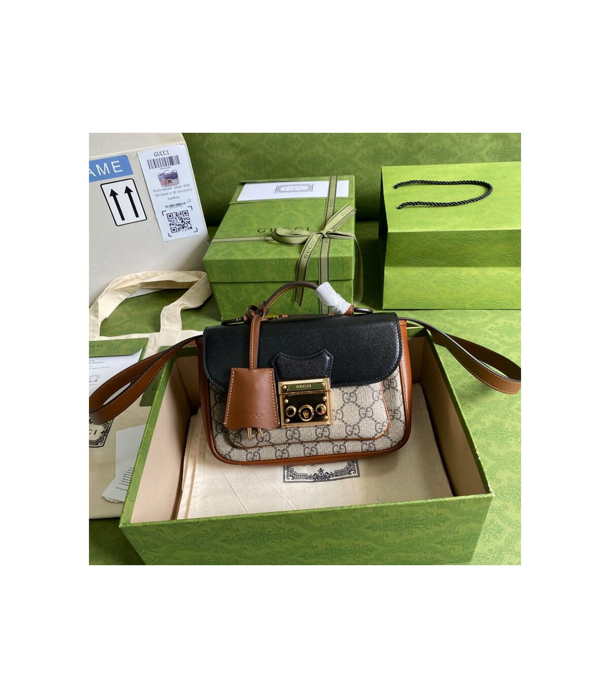 Inspired by a style from the archives, a mini version of the Padlock shoulder bag is introduced as a part of the Ouverture collection. Presented in a mix of white leather and GG Supreme canvas, the style is defined by the line’s signature key lock closure. A colourful orange leather trim completes the style.