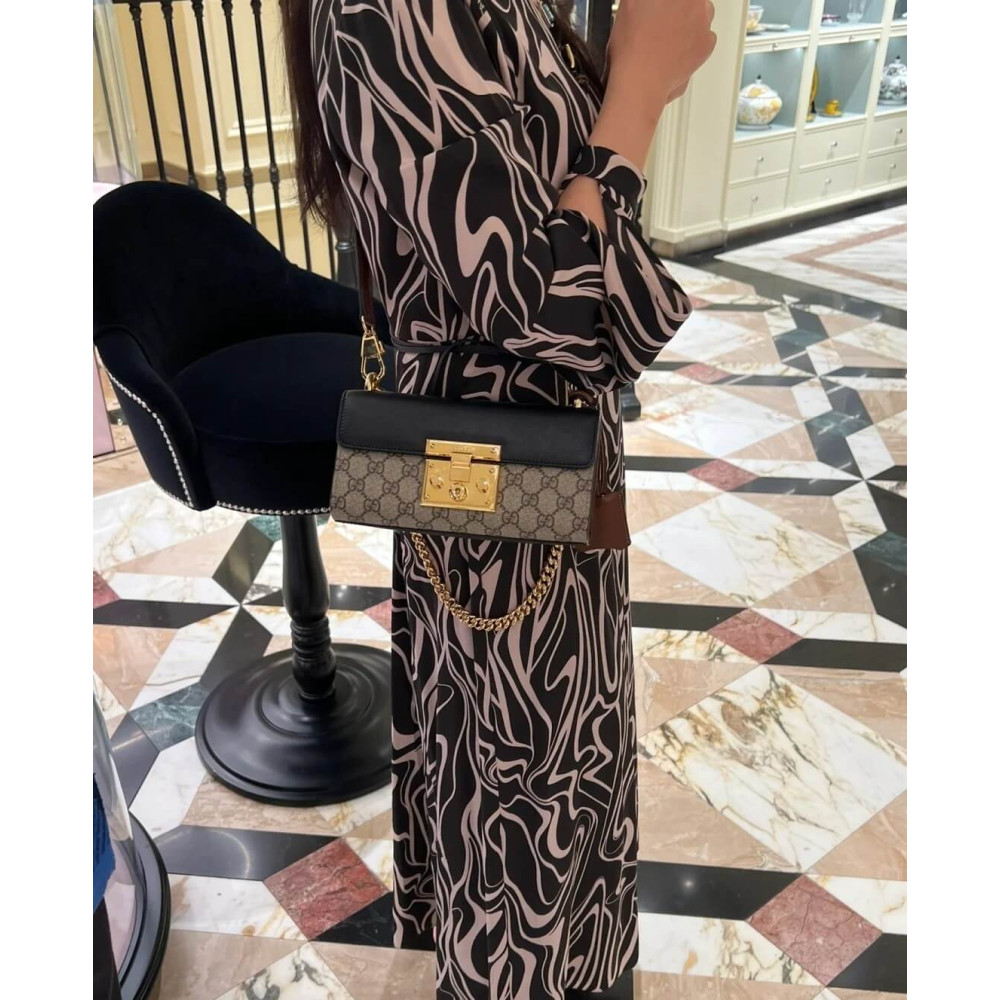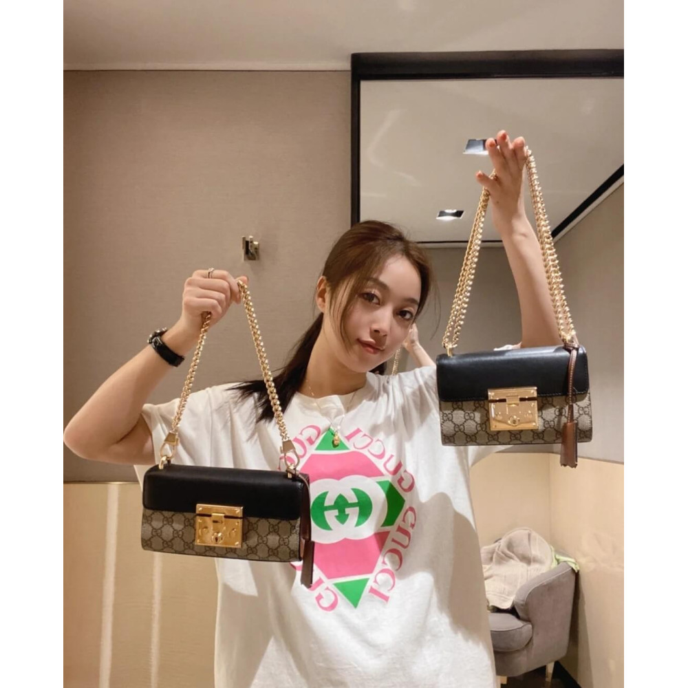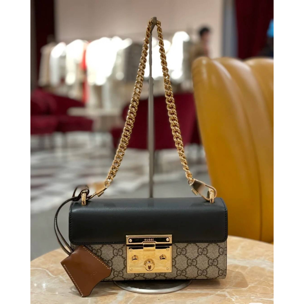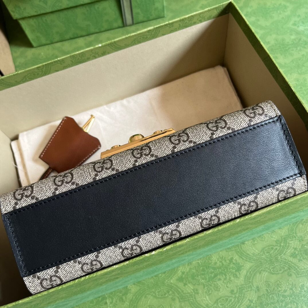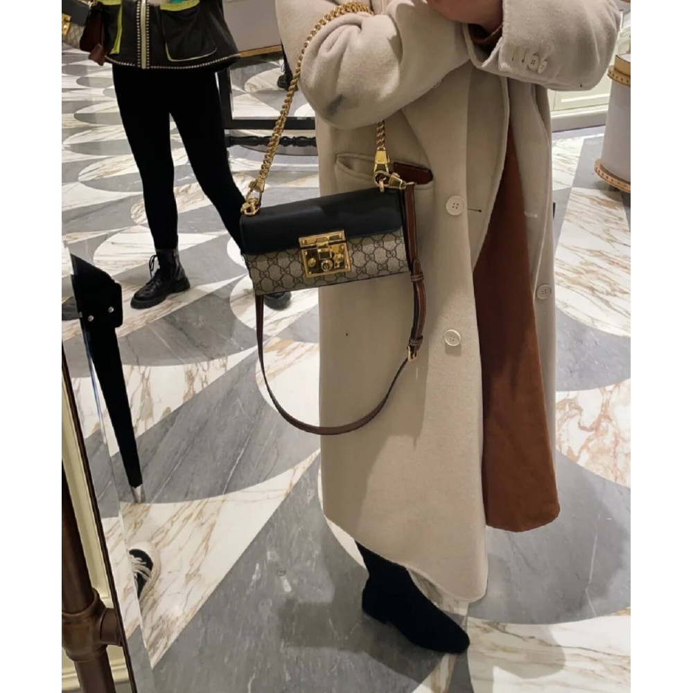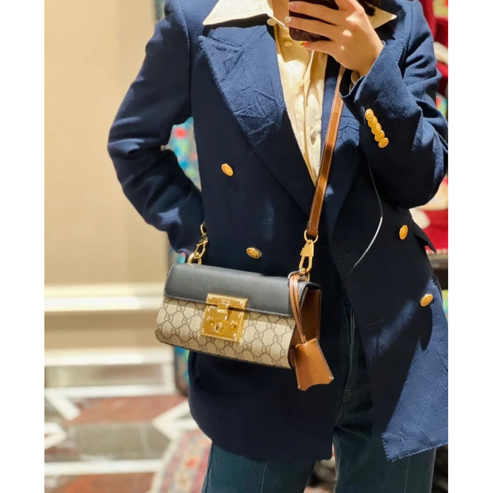 The Padlock’s structured shape is presented in GG Supreme canvas with an oatmeal leather upper. Recalling the brand’s origins in the world of leisure and luggage, the small shoulder bag is defined by its padlock closure.