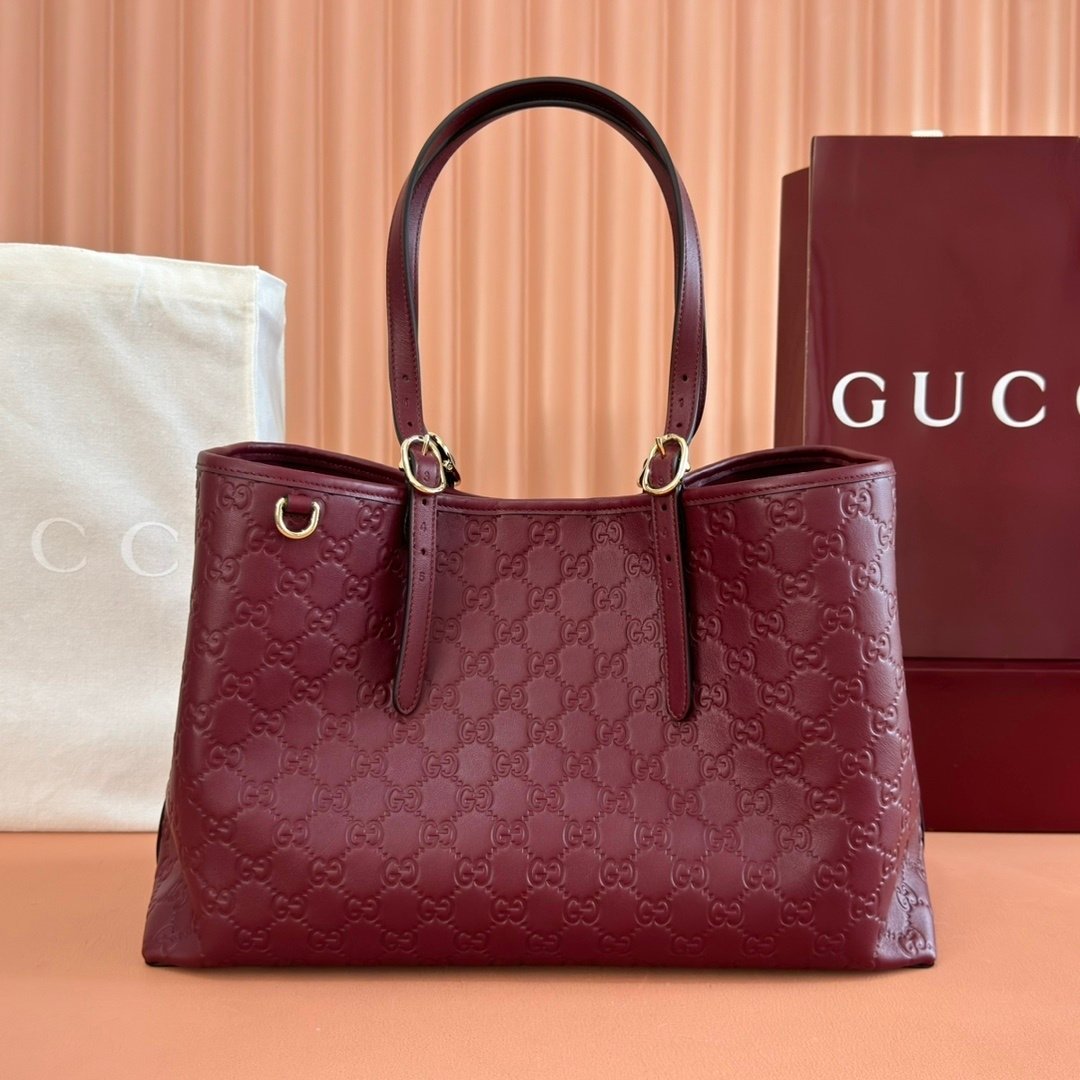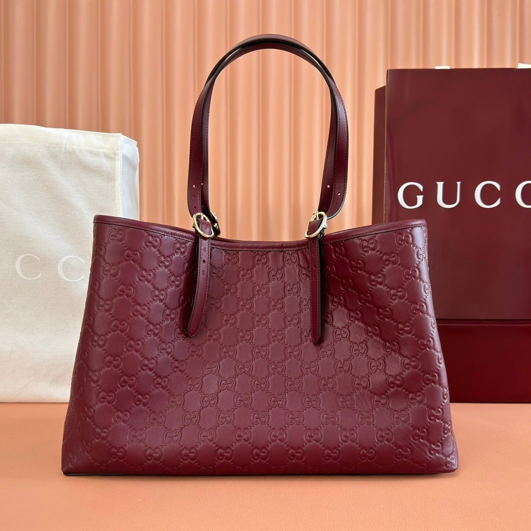 Home Shop All Bags Gucci Gucci Rosso Ancora GG Embossed Leather Tote Bag 38cm/15in