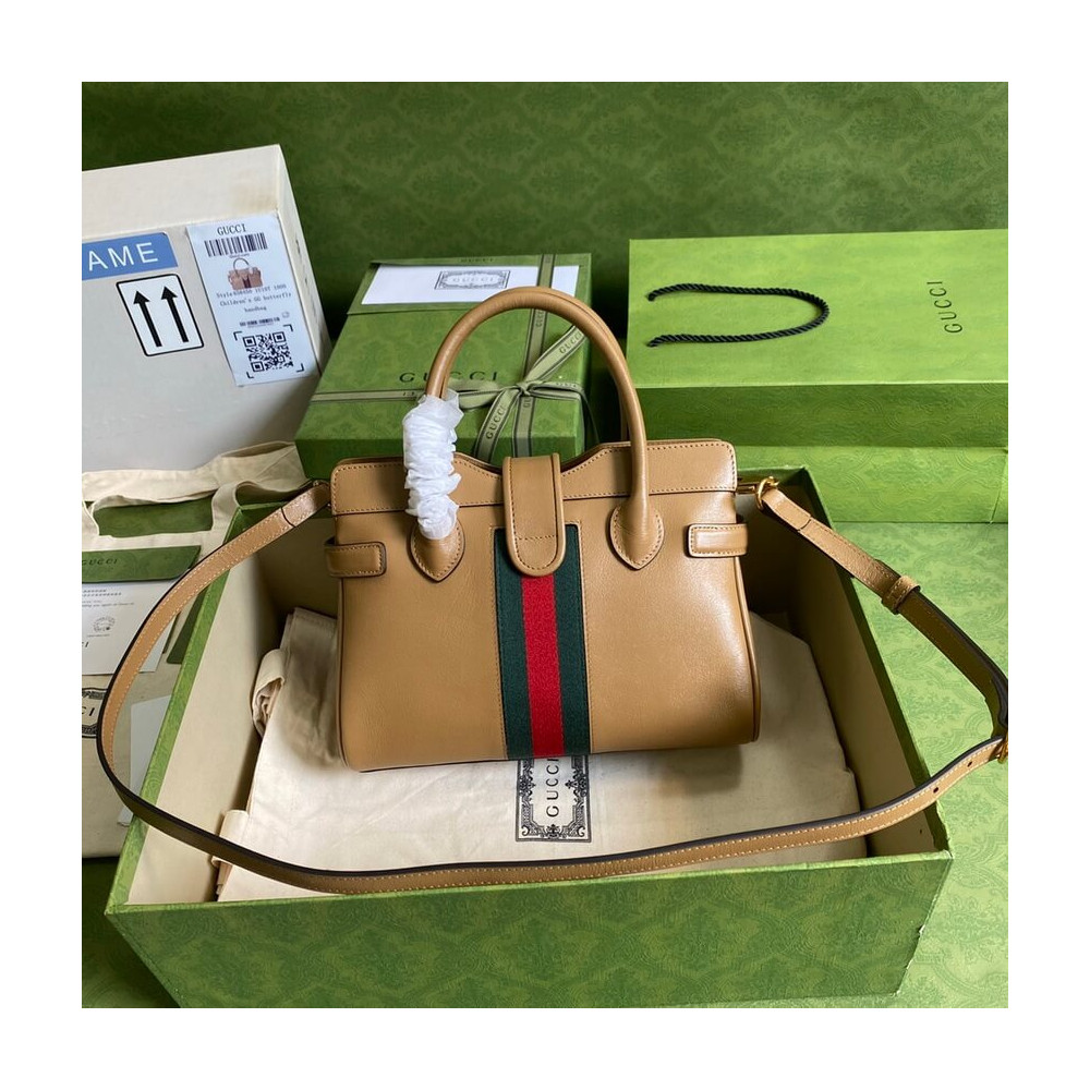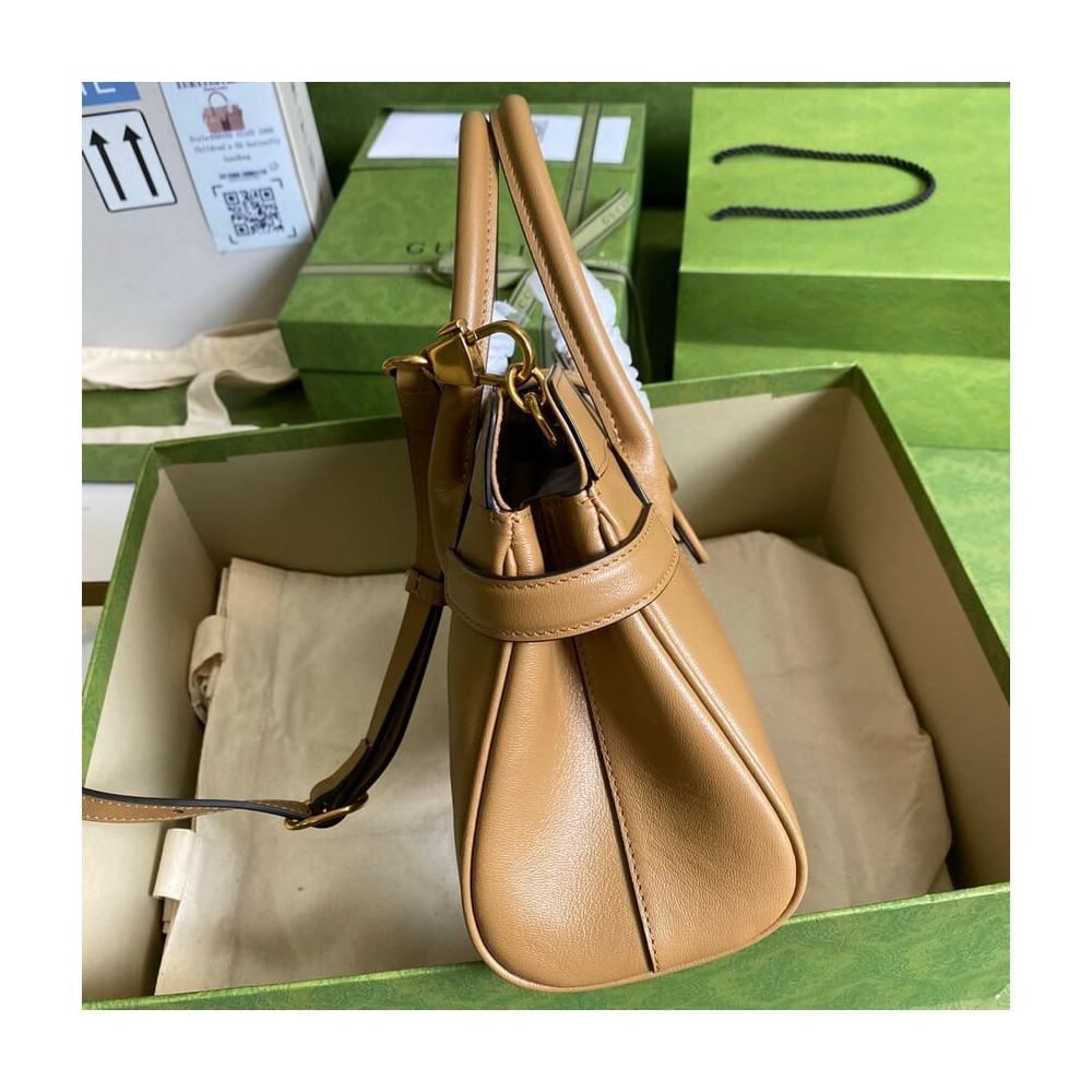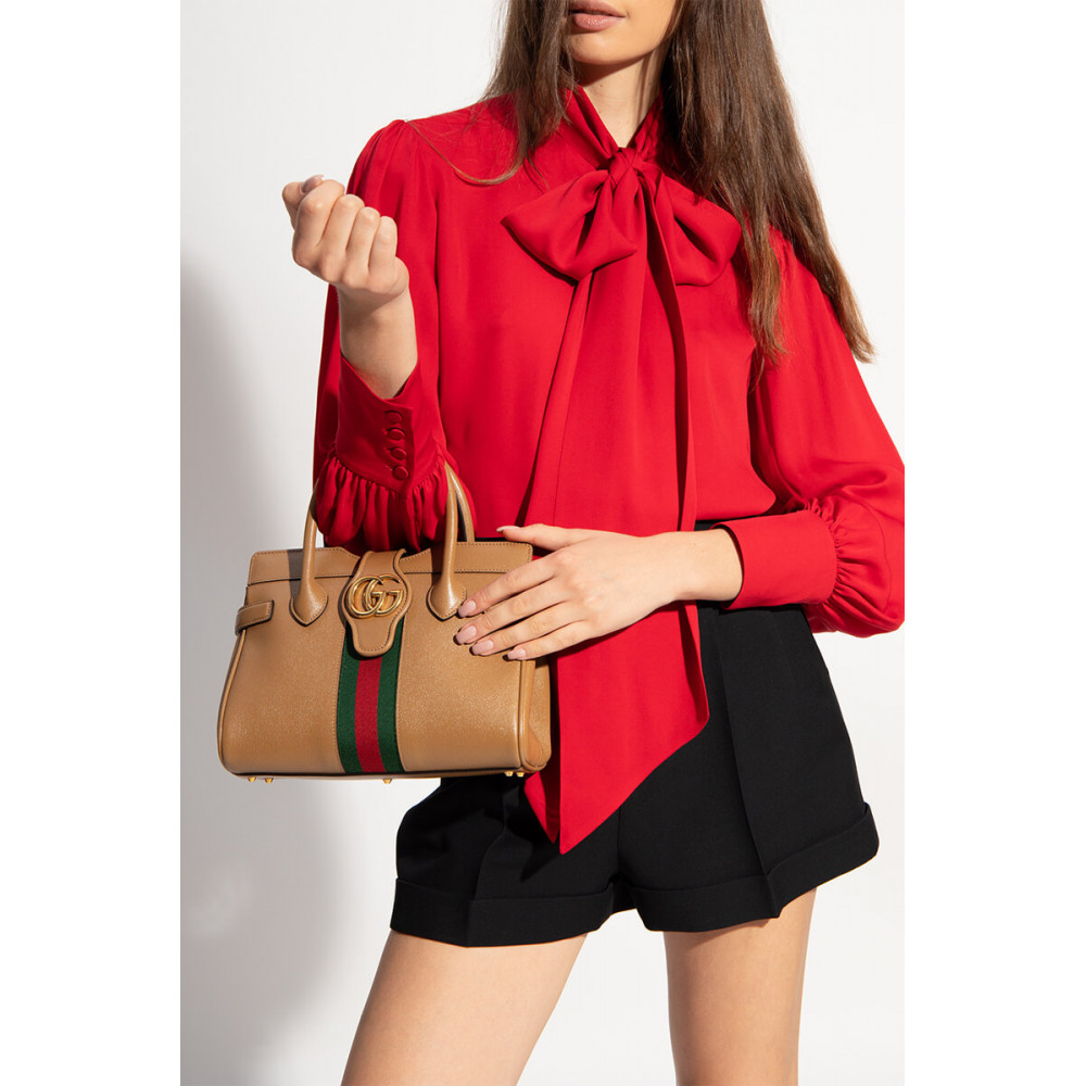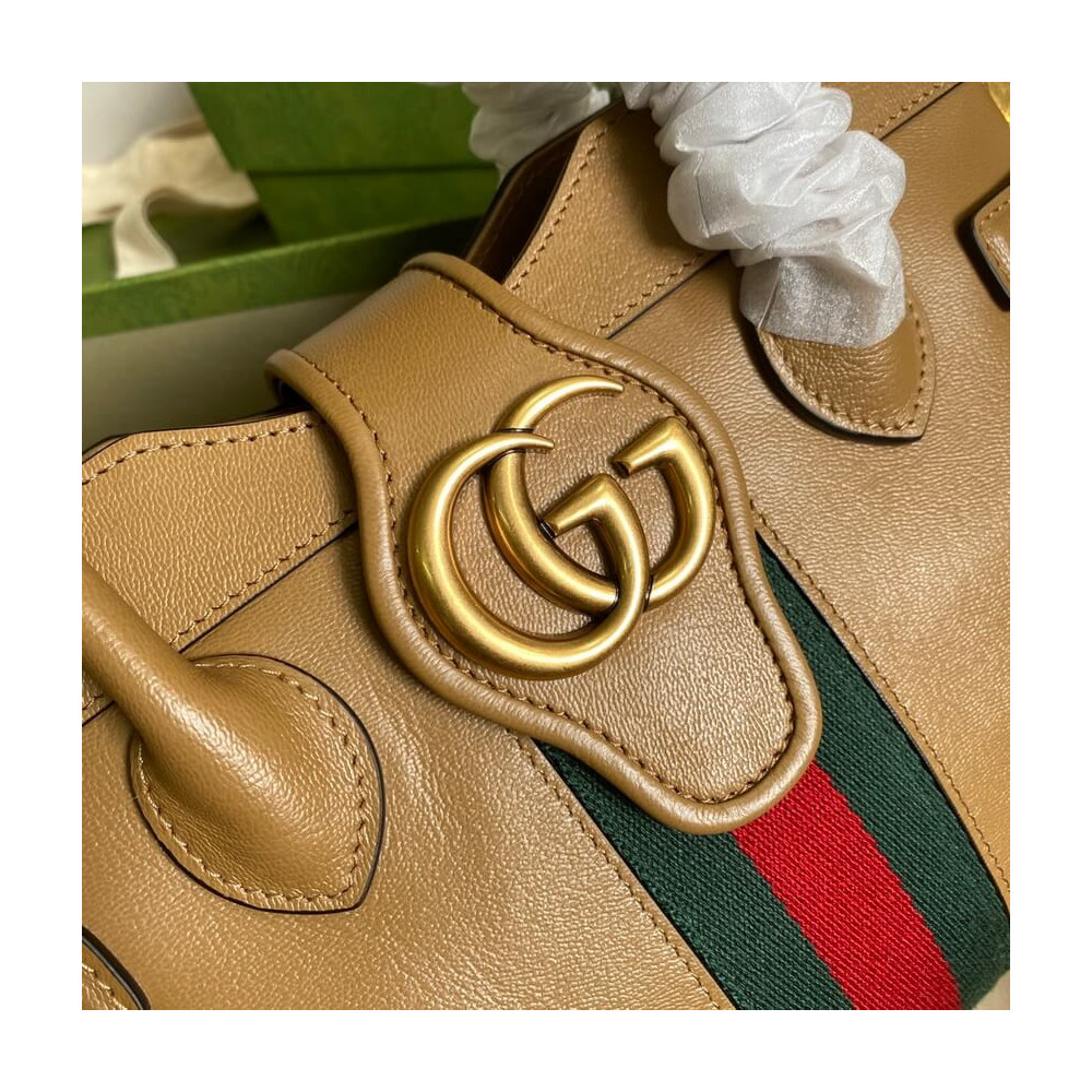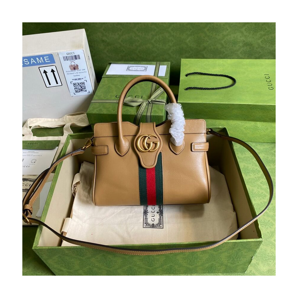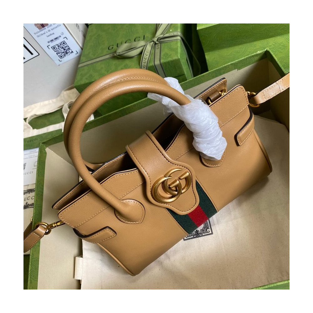 Home Shop All Bags Gucci Gucci Small Top Handle Bag with Double G in Brown Leather