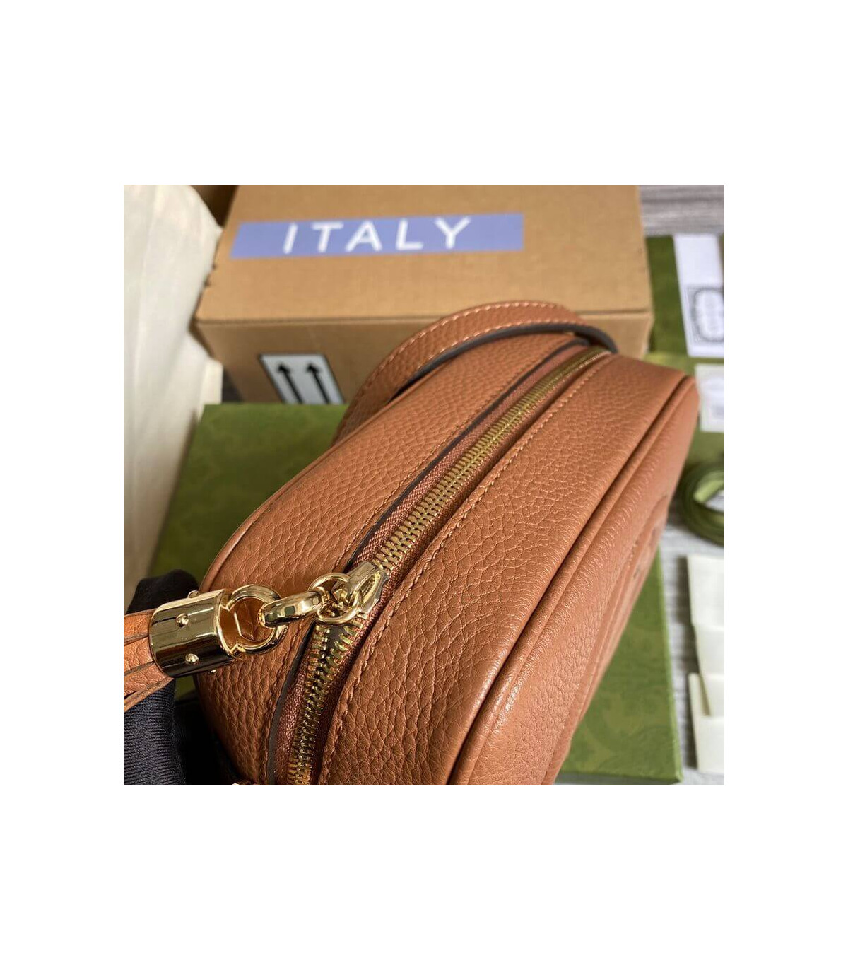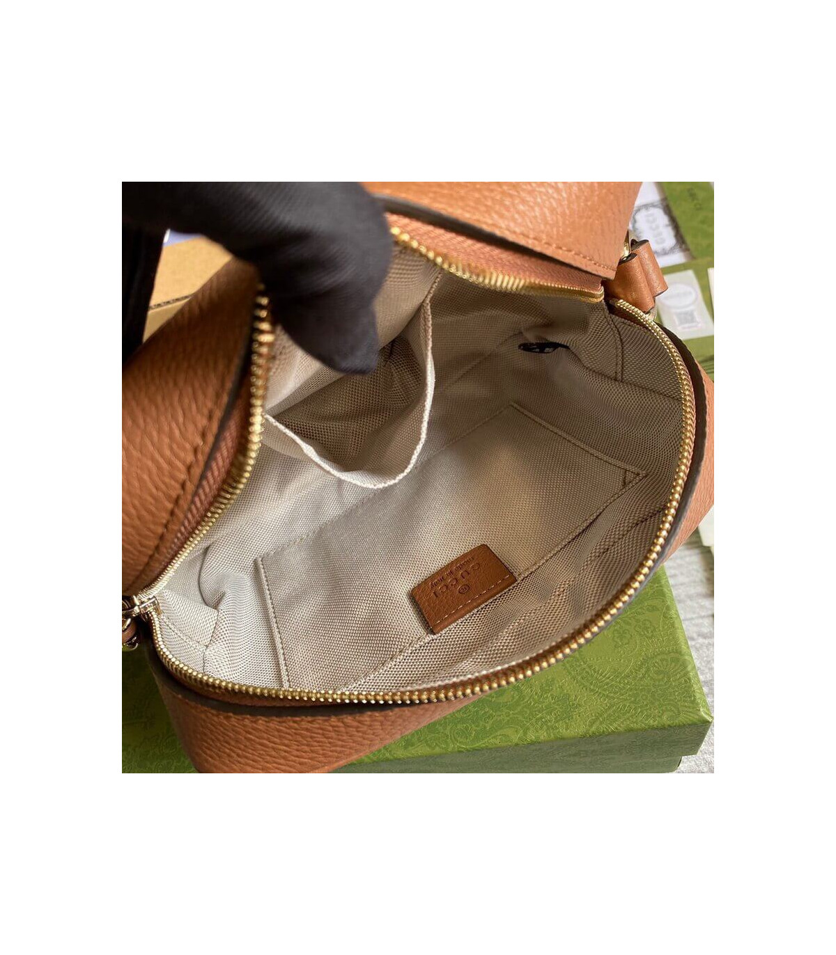 – Light gold-toned hardware