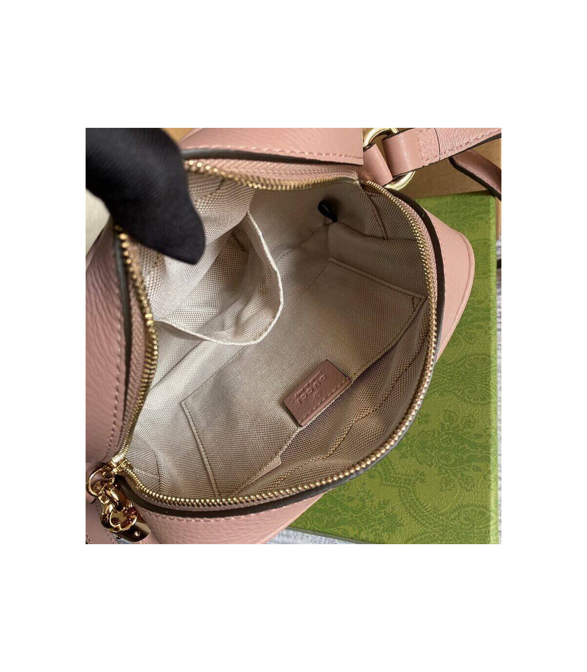 – Light gold-toned hardware