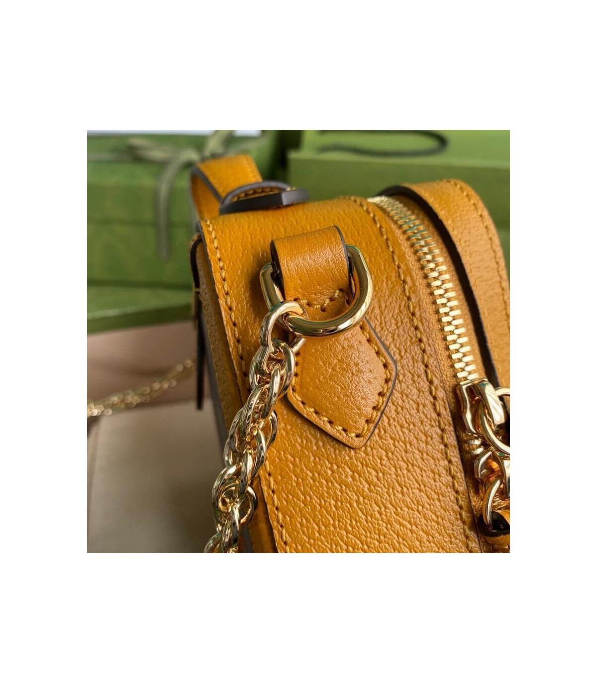 – Gold toned hardware
