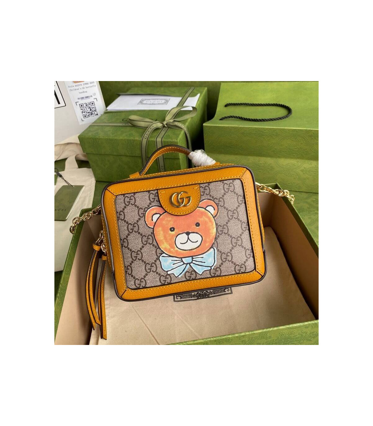 – Beige and ebony GG Supreme canvas with teddy bear print