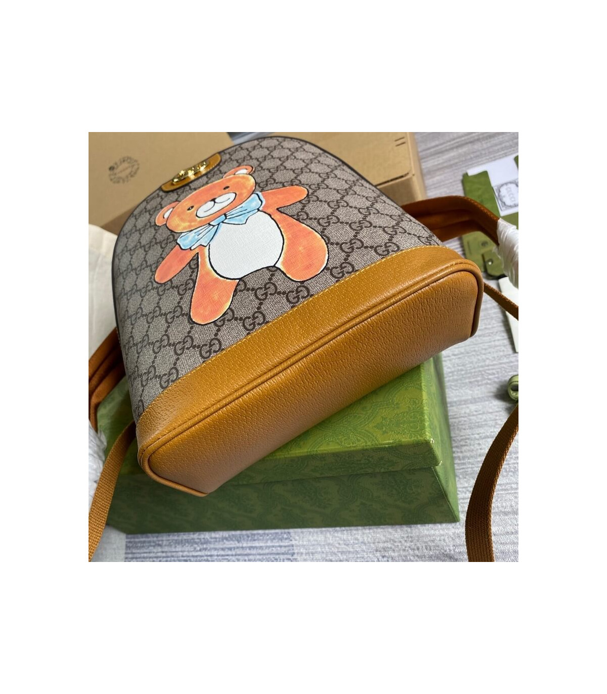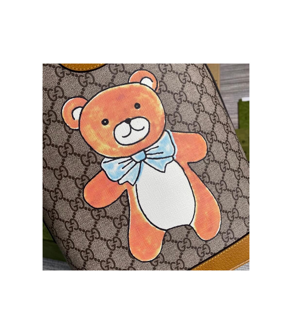 – Beige and ebony GG Supreme canvas with teddy bear print, a material with low environmental impact