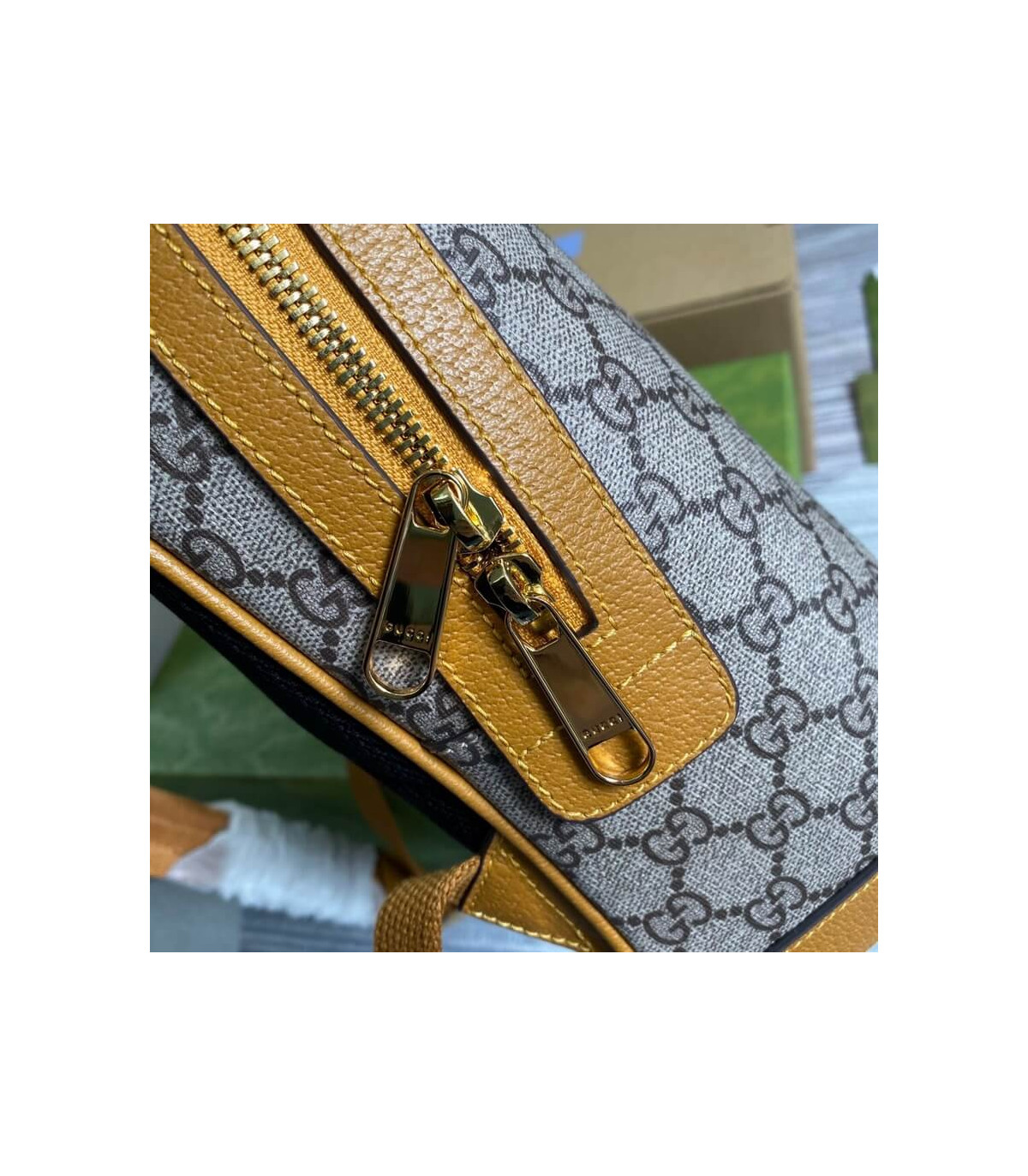 – Mustard leather trim