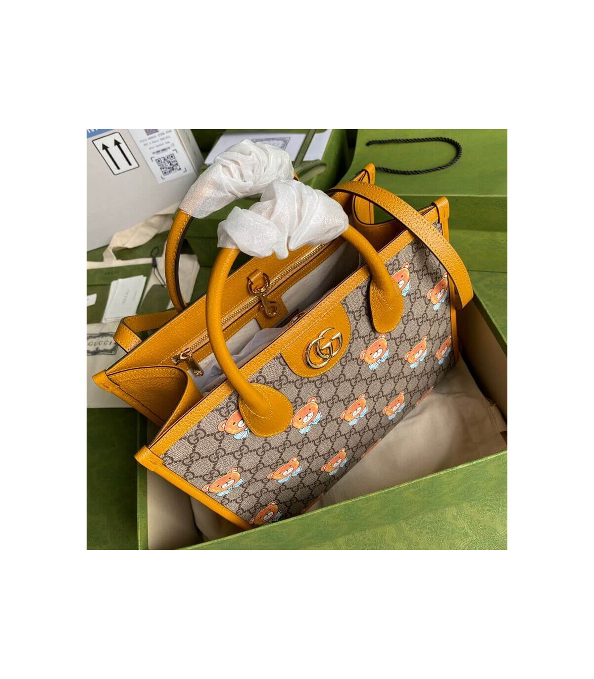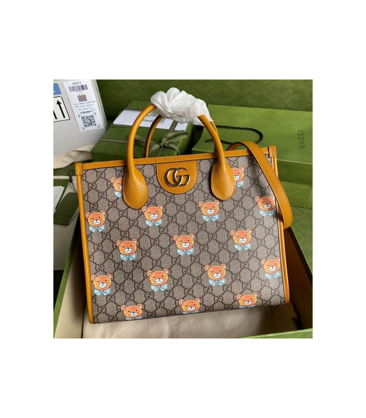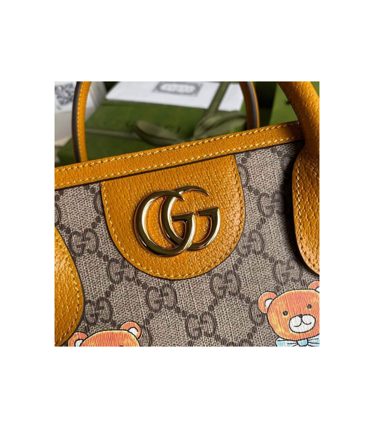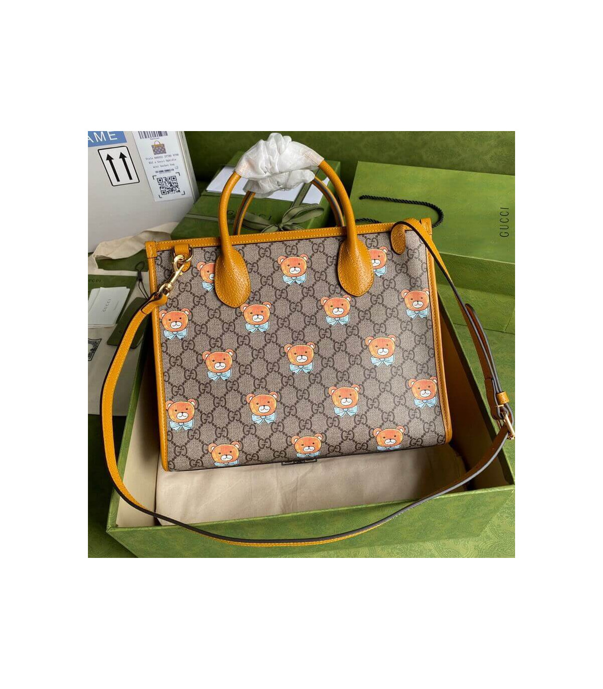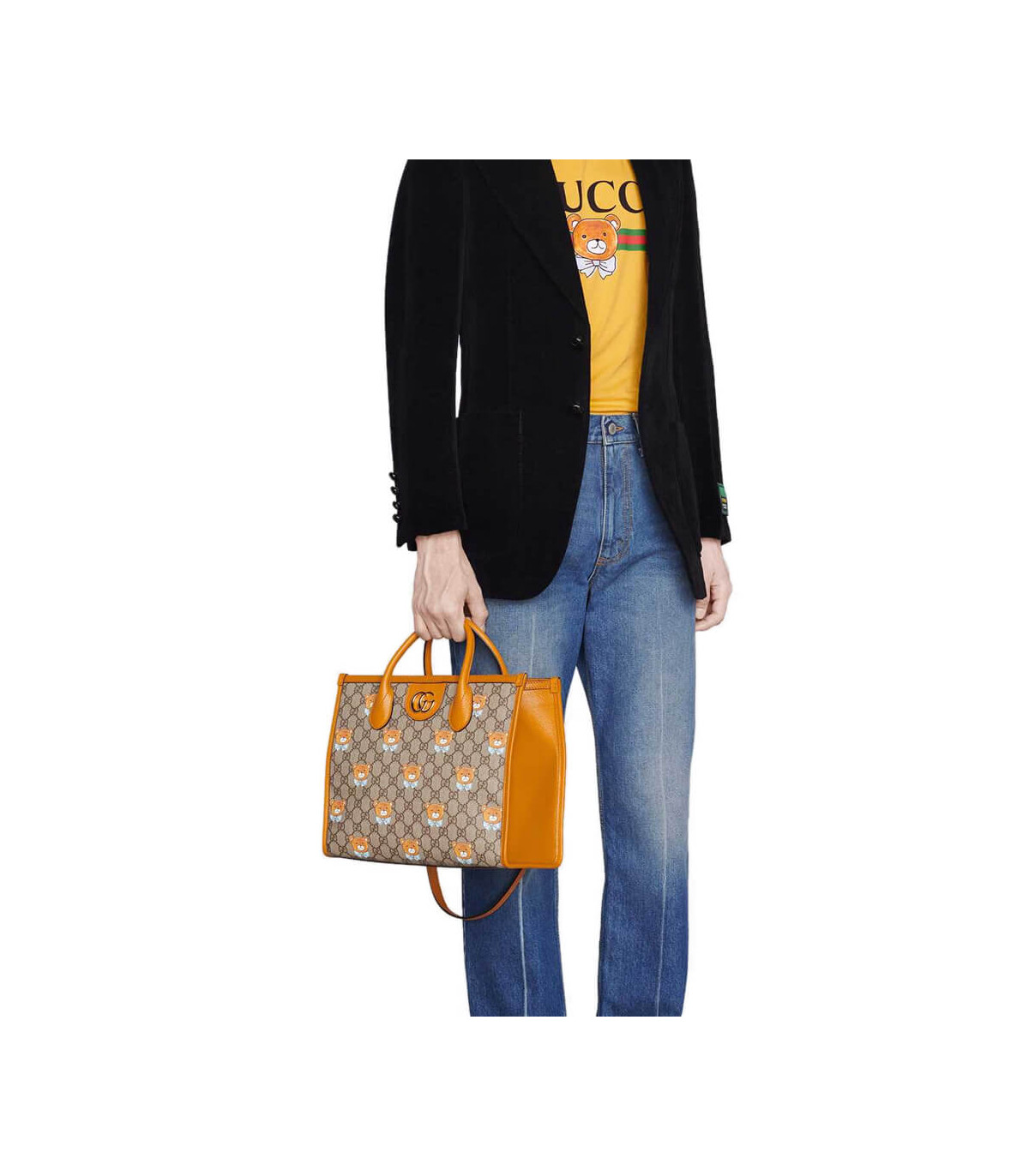 – Beige and ebony GG Supreme canvas with teddy bear print, a material with low environmental impact