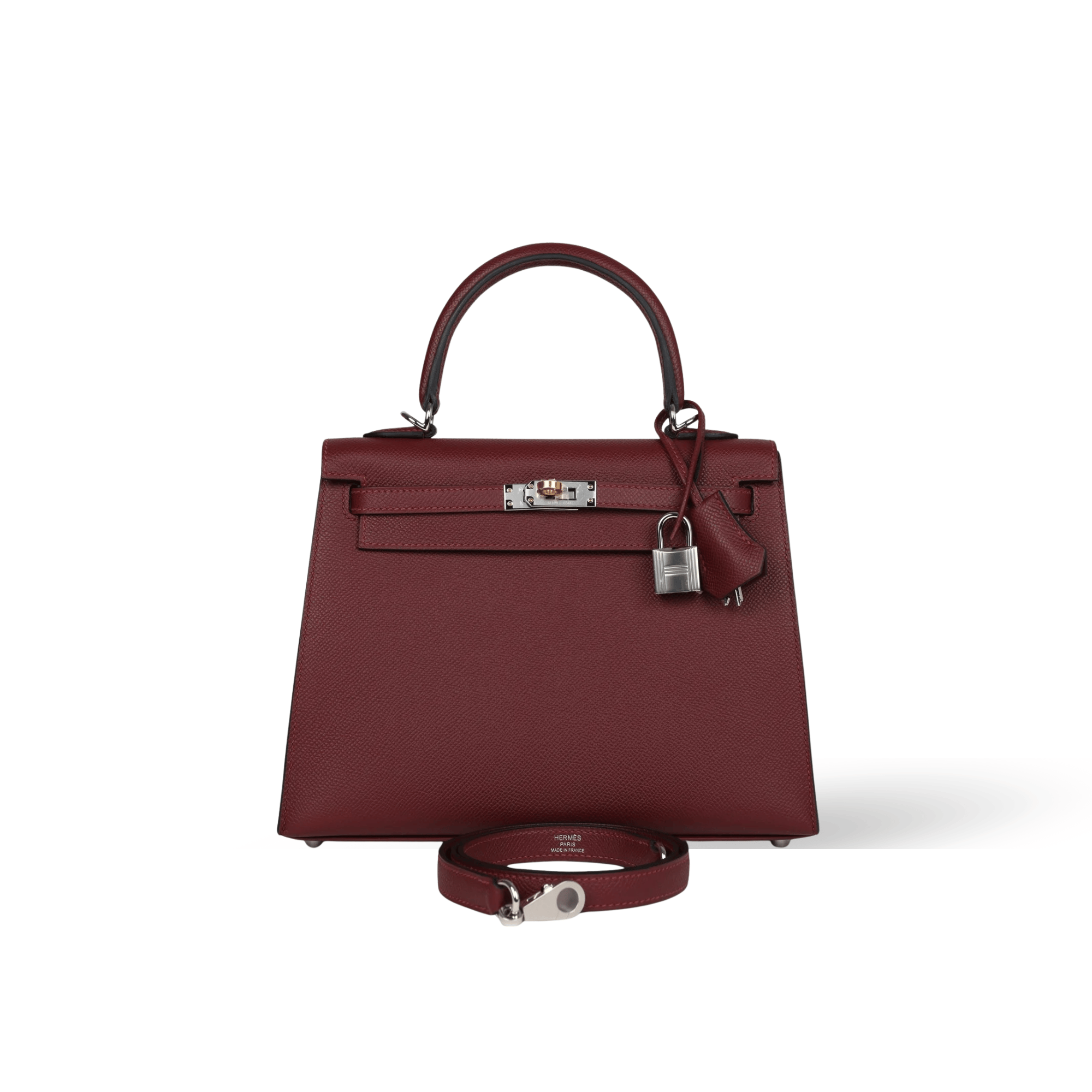 Hermes Kelly 25 Bag In Burgundy Epsom Leather For Women 25cm/10in