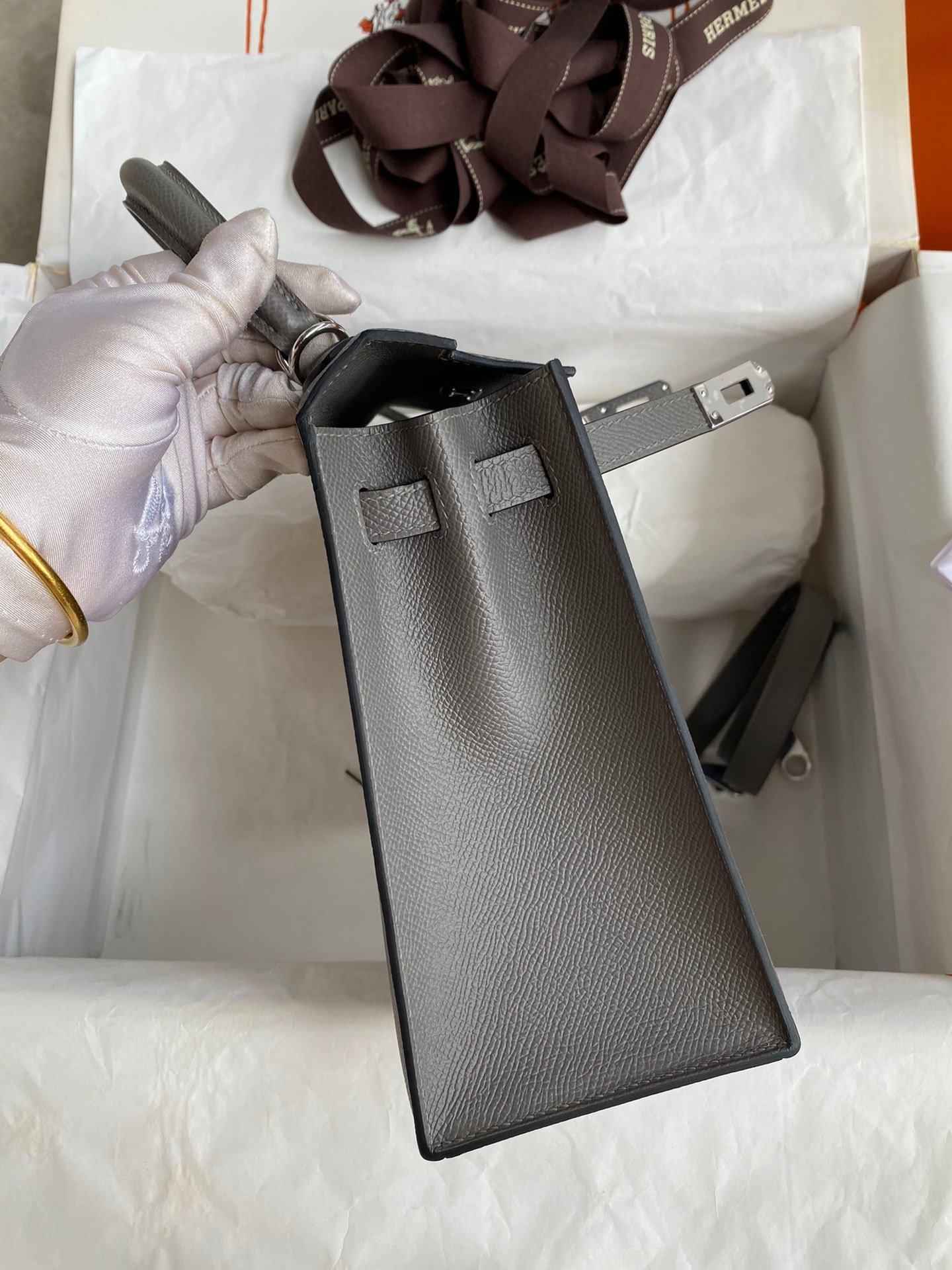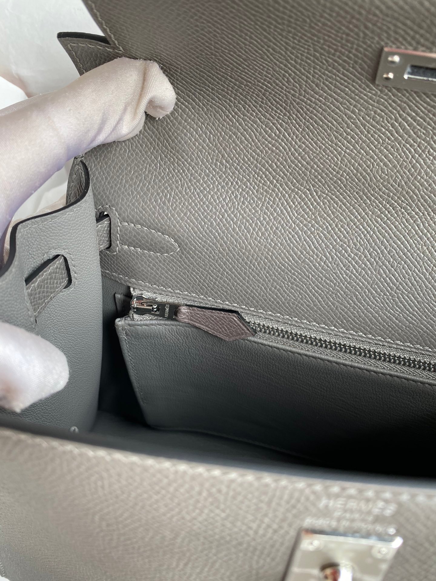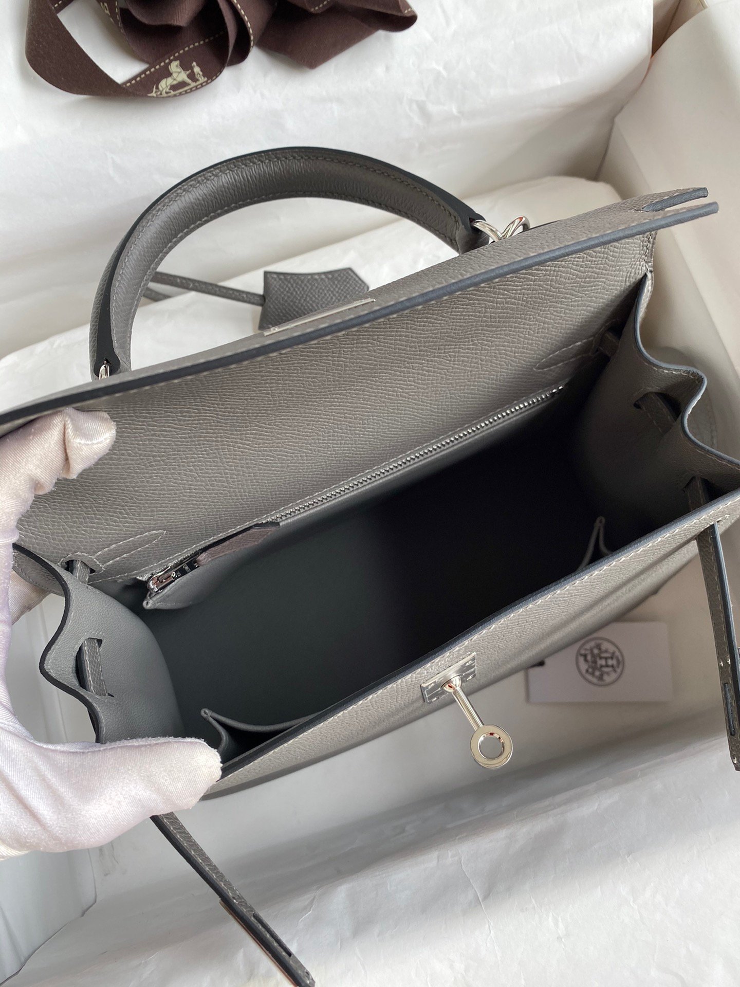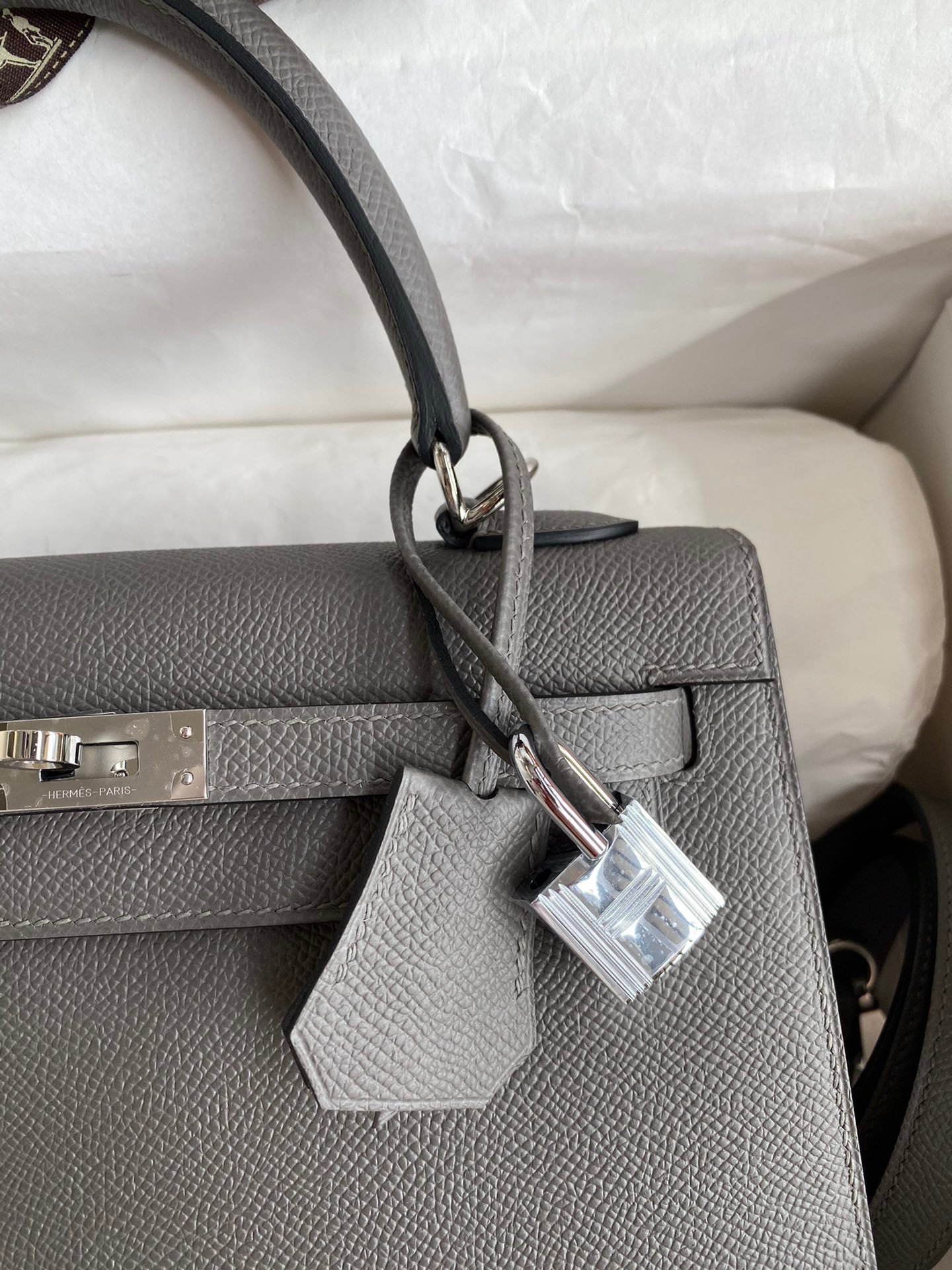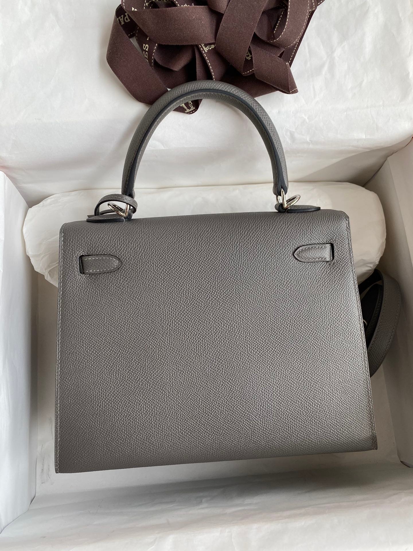 Hermes Kelly 25 Bag In Dark Grey Epsom Leather For Women 25cm/10in