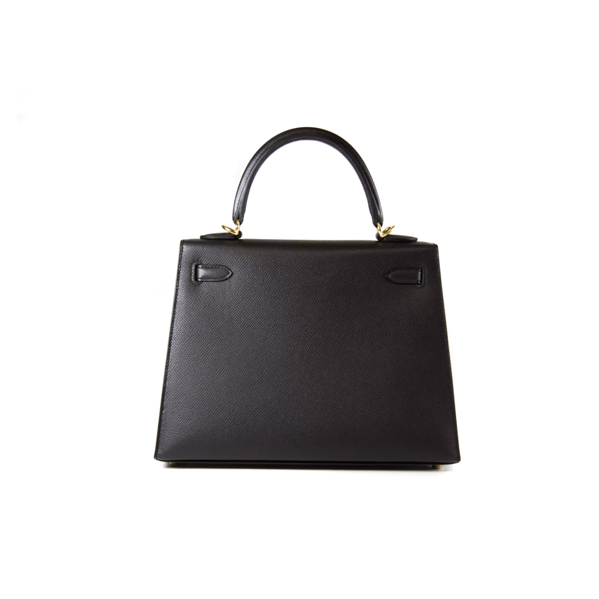 Hermes Kelly 25 Bag In Golden Black Epsom Leather For Women 25cm/10in