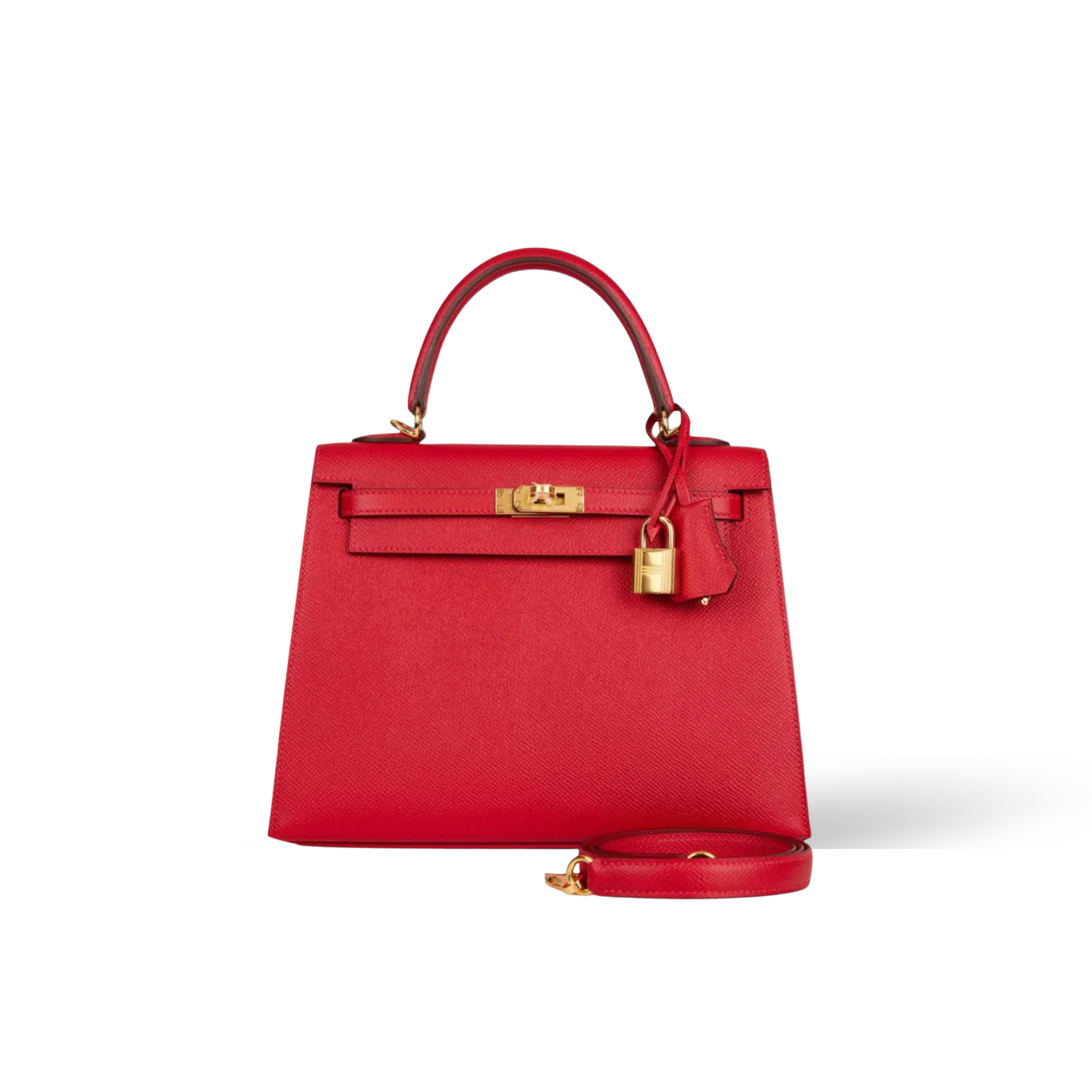 Hermes Kelly 25 Bag In Golden Casaque Red Epsom Leather For Women 25cm/10in