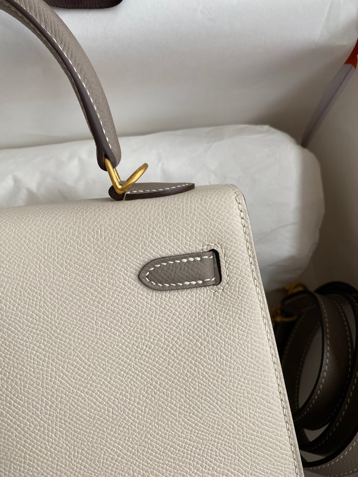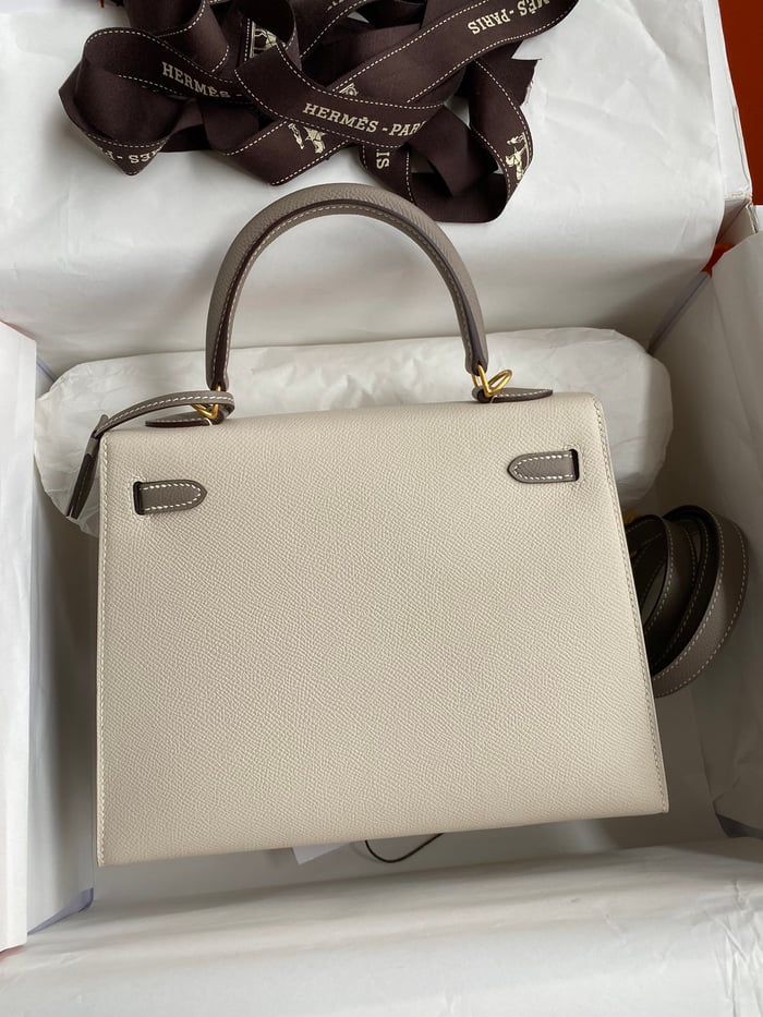 Hermes Kelly 25 Bag In Ivory Beige Epsom Leather For Women 25cm/10in