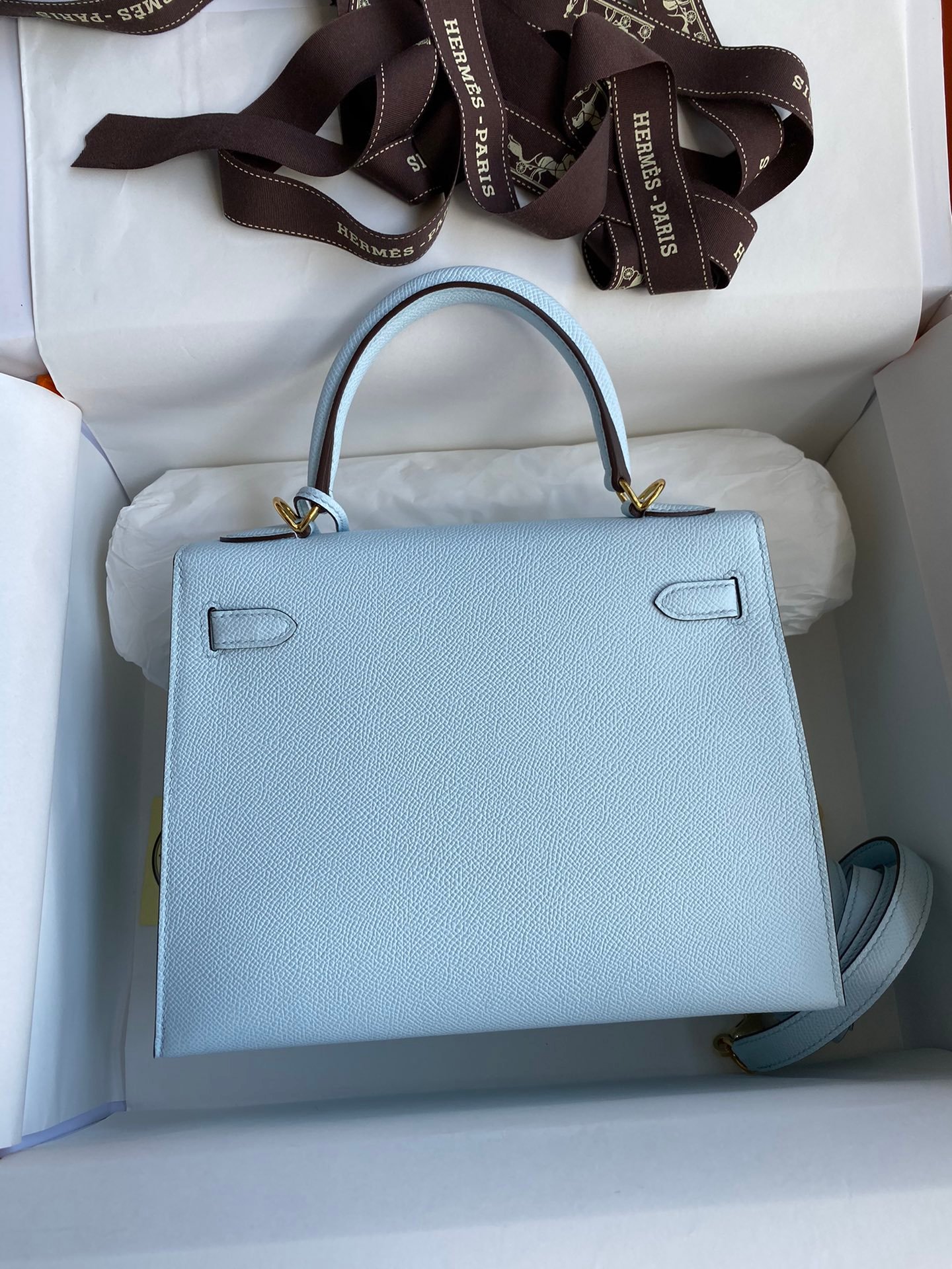 Hermes Kelly 25 Bag In Light Blue Epsom Leather For Women 25cm/10in
