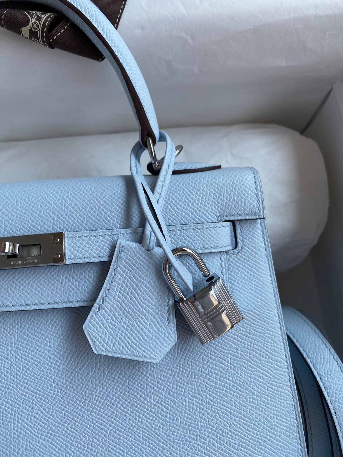 Hermes Kelly 25 Bag In Sky Blue Epsom Leather For Women 25cm/10in