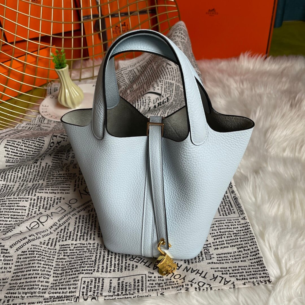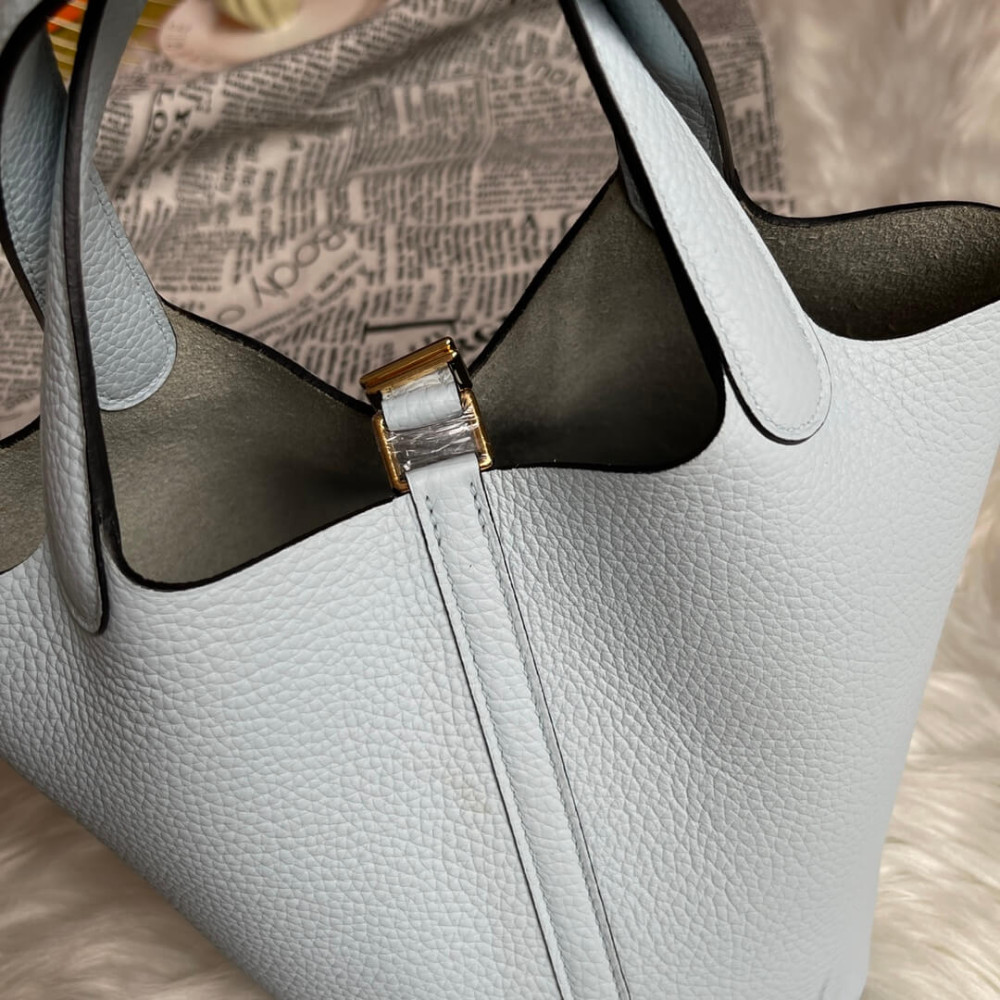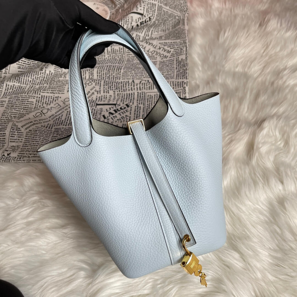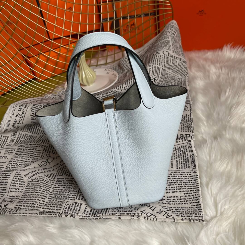 Hermes Picotin Lock Bag In Taurillon Clemence Bleu Pale 22Cm