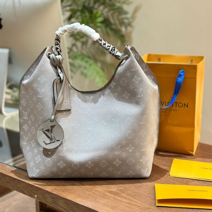 Louis Vuitton Creme Mahina Carmel Hobo Bag Grey 40Cm