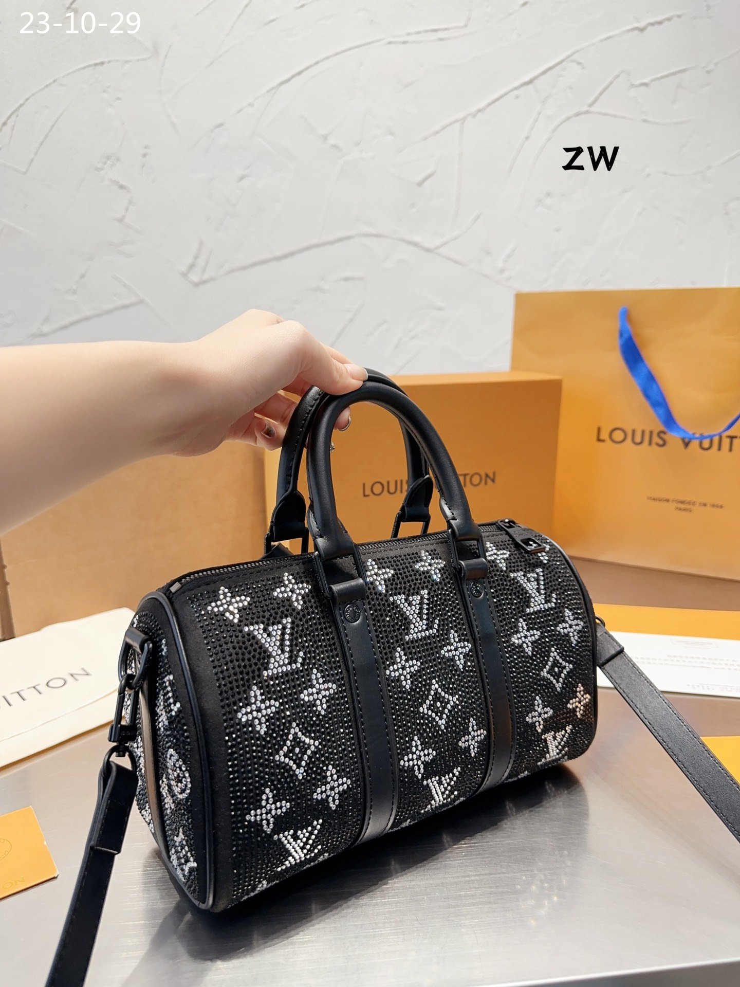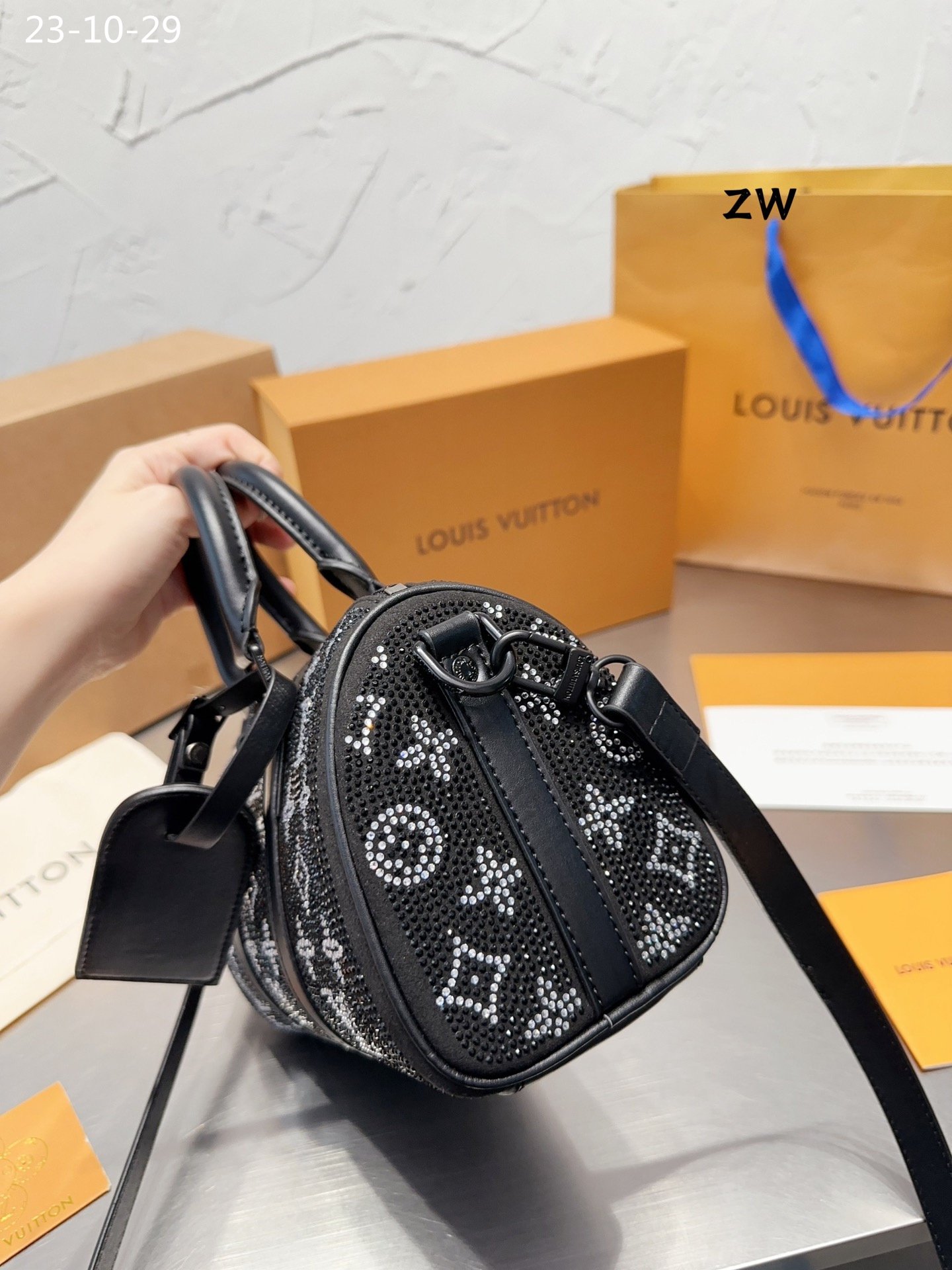 Louis Vuitton Crystal Keepall Bandouli Re 25 Black 25Cm