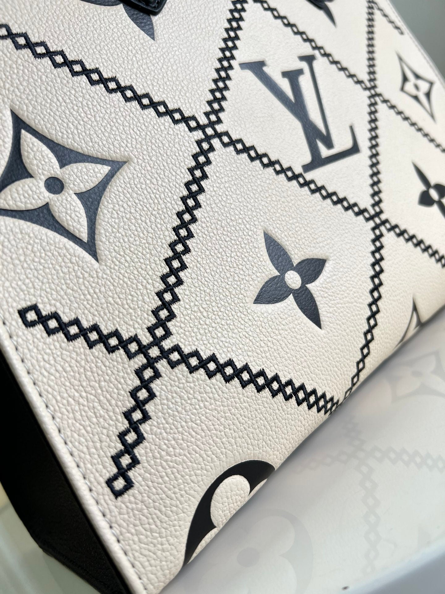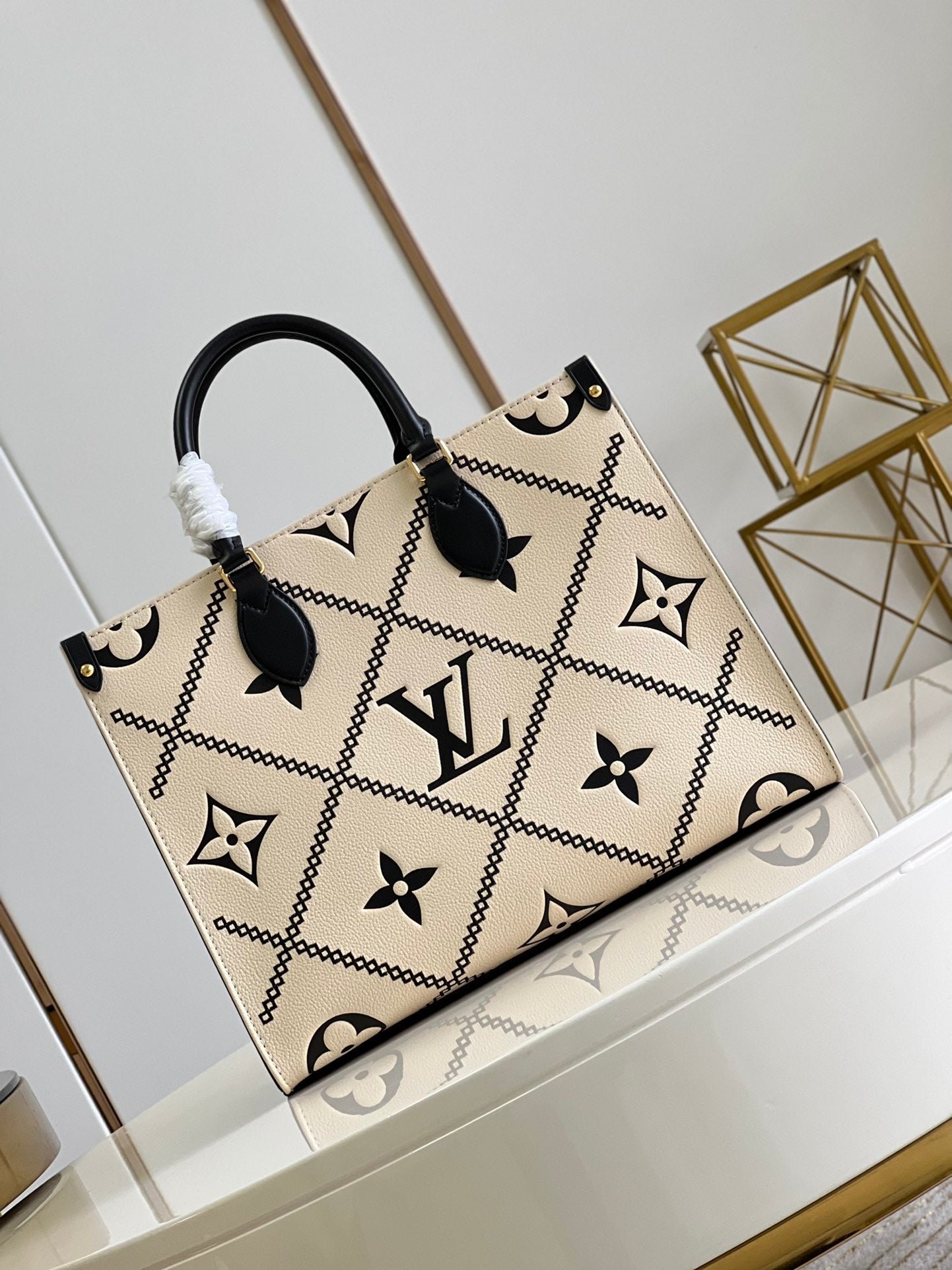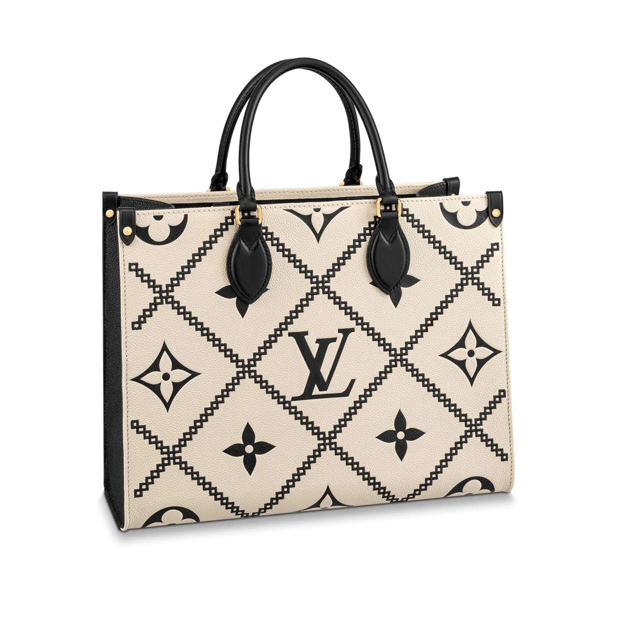 Louis Vuitton Onthego MM Tote Monogram Cream Beige Black 35cm