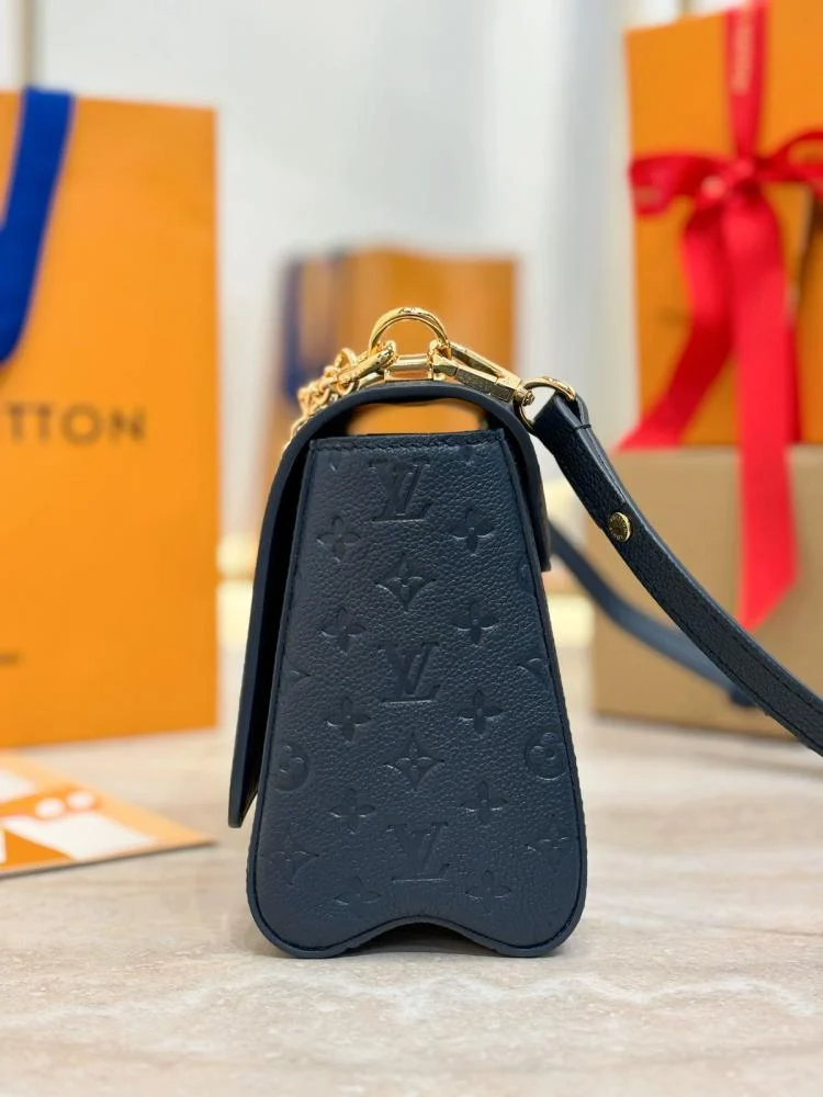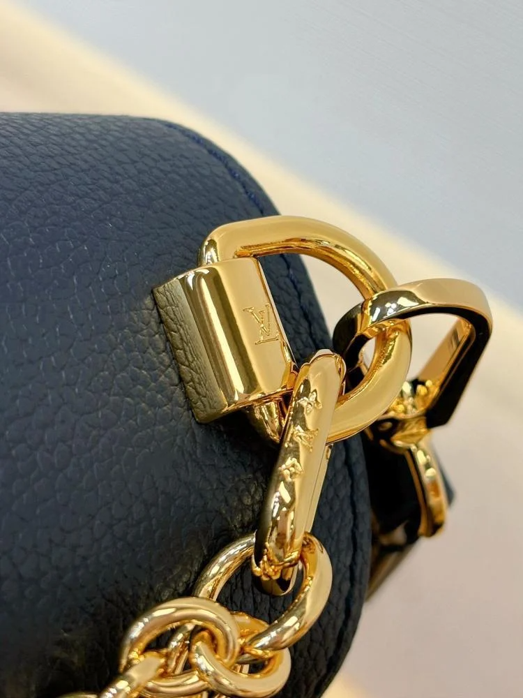 Part of the Harmony collection, the Twist MM Slim is a sophisticated day-to-night choice. It is crafted from Taurillon leather and embellished with a decorative chain adorned with Monogram Flower details, inspired by the House’s Puffygram earrings from Fall-Winter 2024. The signature LV Twist lock is coated in resin to create a tonal finish. Use the removable mirror for makeup touch-ups.