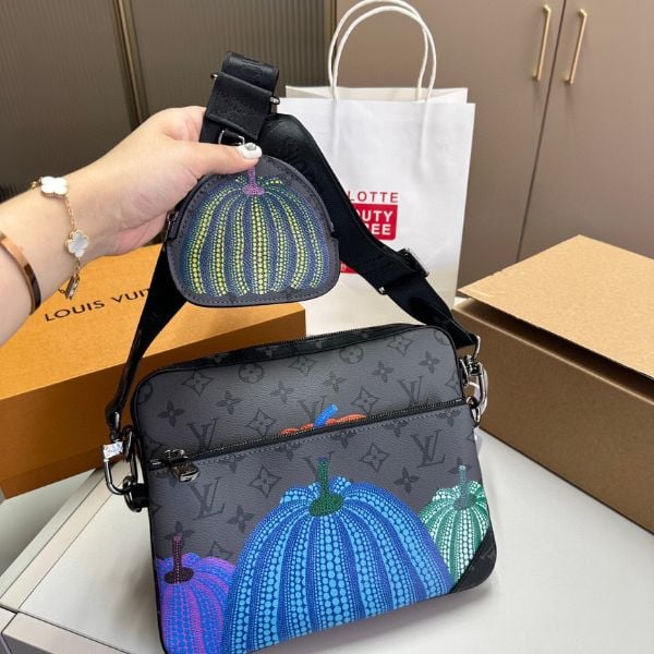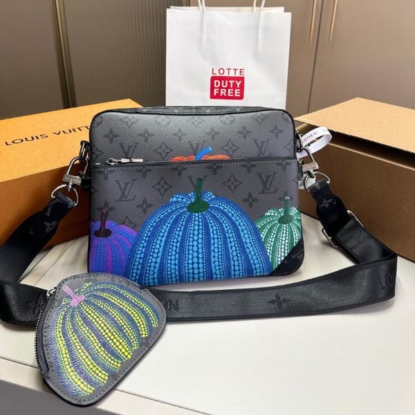 Louis Vuitton X Yk Trio Messenger Monogram Eclipse Reverse Pumpkin 21Cm M46435