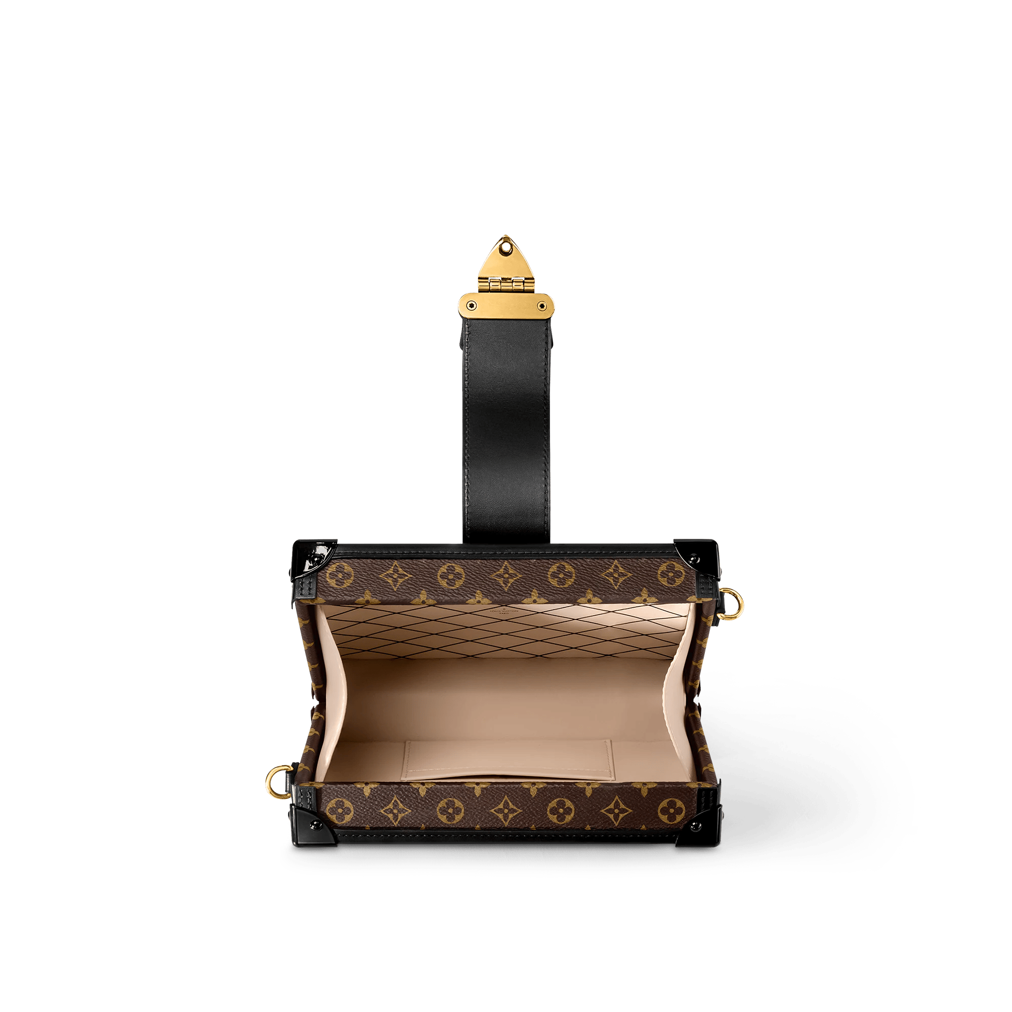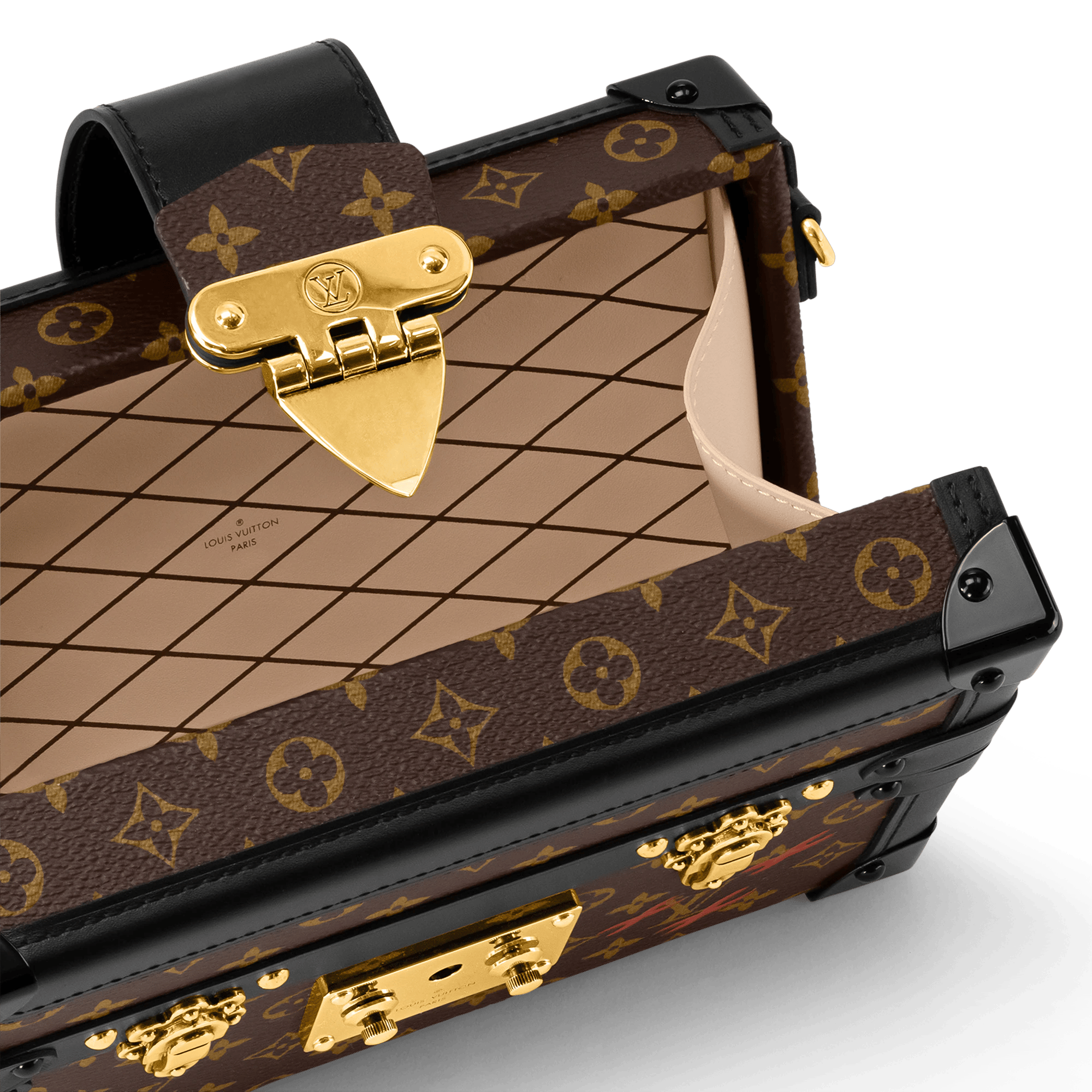Every detail of the Petite Malle handbag is inspired by the history of Louis Vuitton trunks: the shape, the iconic Monogram canvas, the gold-tone lock and fittings – even the sheepskin lining reprises a classic House motif. Impeccably crafted, with smooth calfskin trim, this covetable “little trunk” travels easily from day to evening. It can be carried as a clutch or attached to the adjustable strap for cross-body wear.