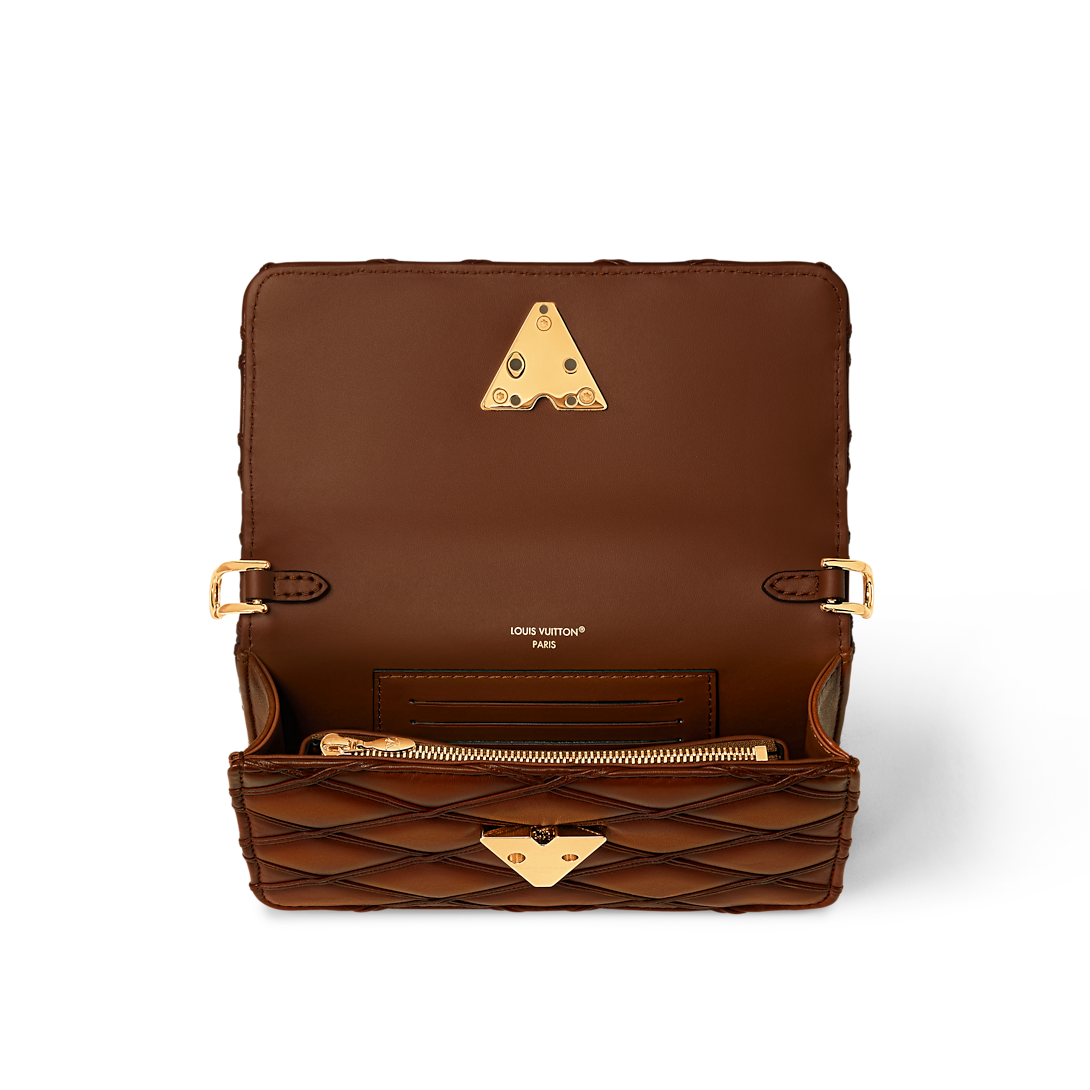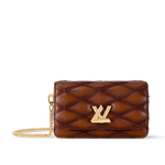 Introducing the new Wallet On Chain GO-14, designed as the perfect day-to-evening handbag. It is crafted from precious quilted lambskin leather and is elevated with signature details including an LV lock and an interlaced round sliding chain that offers multiple styling options. Remove the gold-tone enchappes to turn it into a chic pochette.