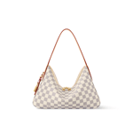 Part of the Damier Azur collection, this edition of the Slouchy PM is inspired by the elegant lifestyle of the French Riviera. The unique pattern is created using a heliogravure printing process and is complemented with sleek gold-toned hardware. Signature details include the natural leather name tag, which includes a padlock that symbolizes the House’s heritage and craftsmanship.