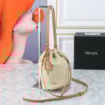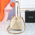 Prada Crochet And Leather Bucket Bag Natural 24Cm