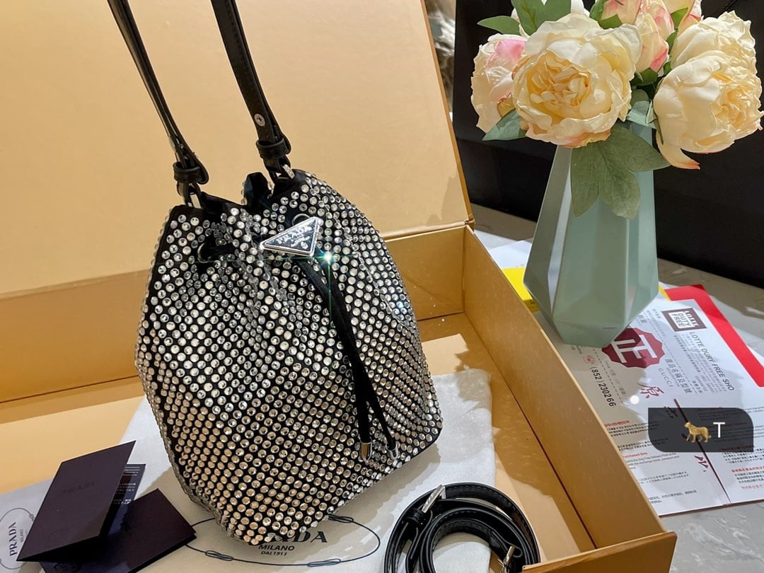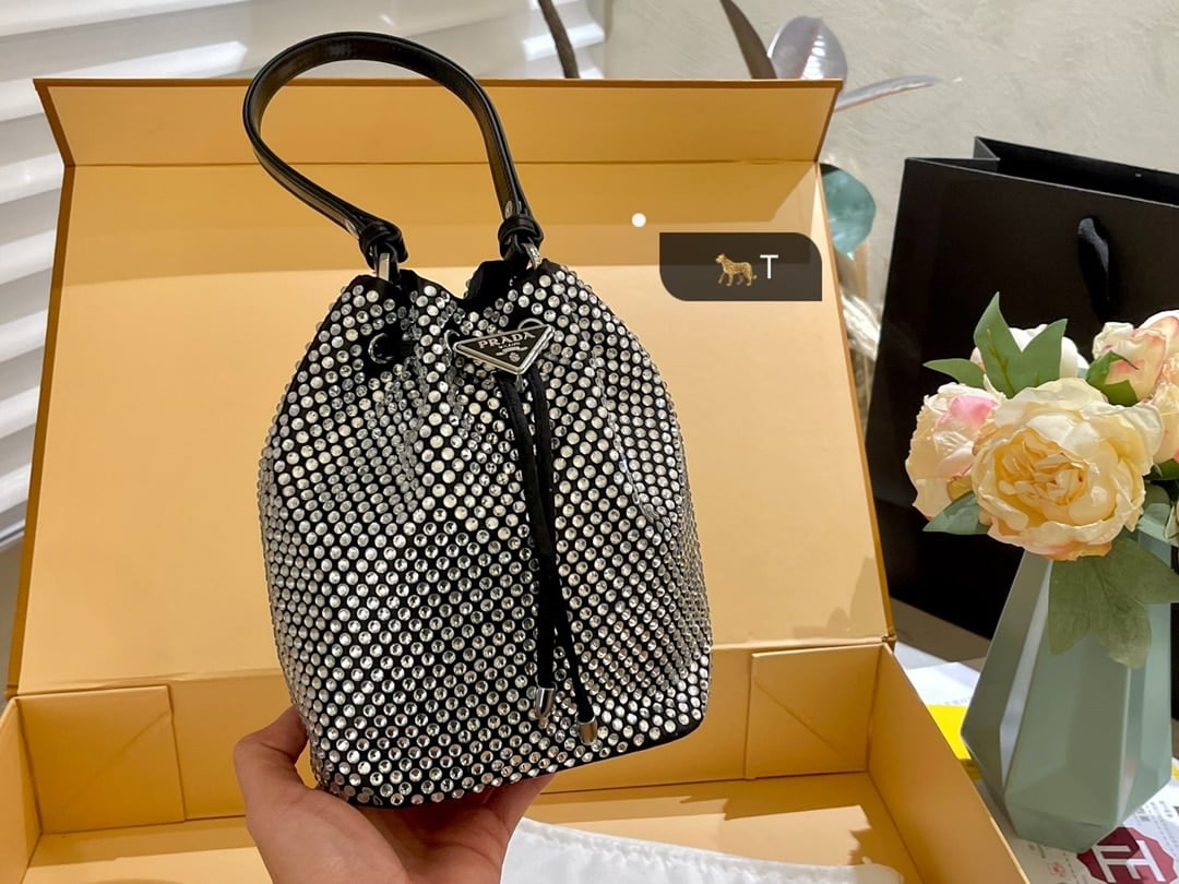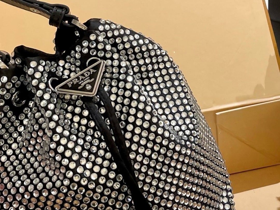 Prada Embellished Satin Pouch Crystal Color 18Cm