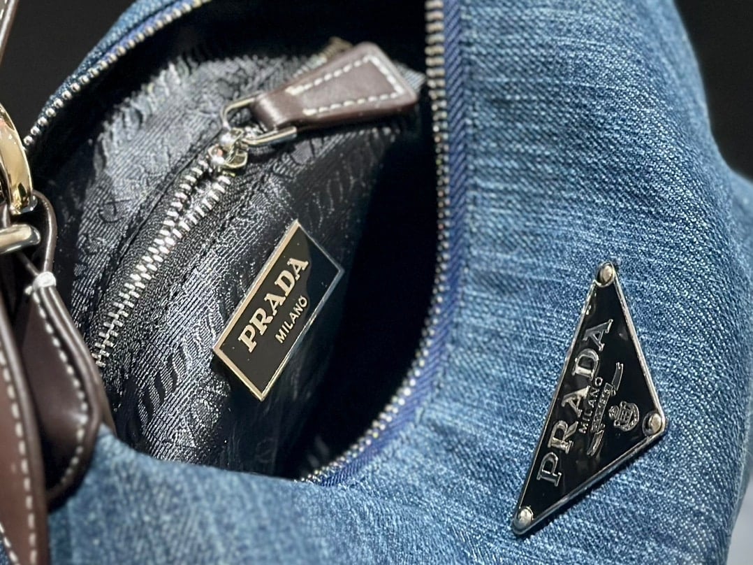 Prada Jeans Ring Shoulder Bag Denim Blue 25Cm