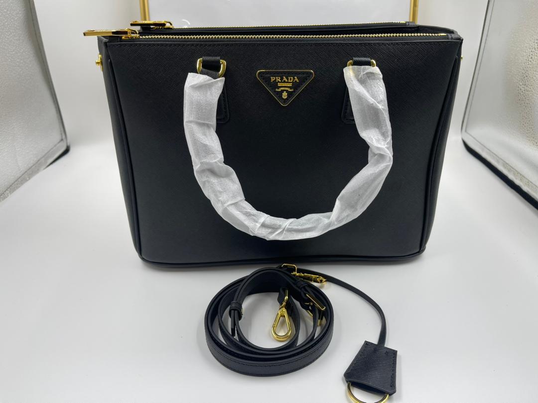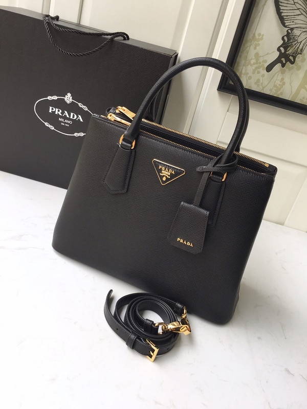 Prada Large Galleria Saffiano Leather Bag In Black