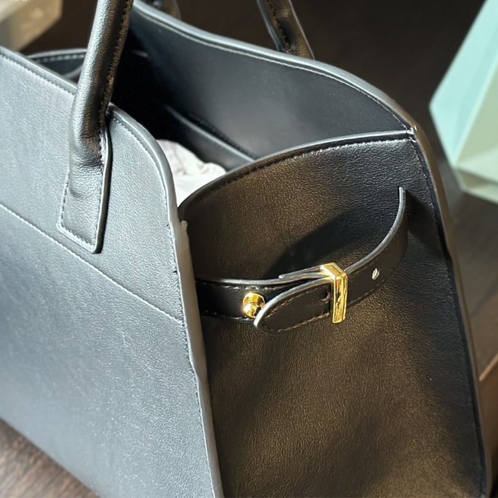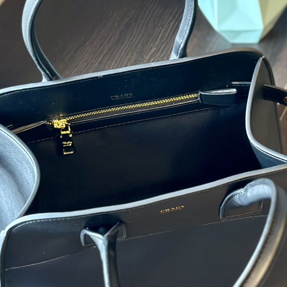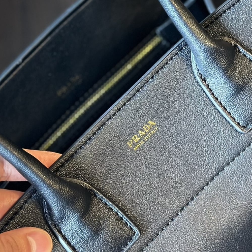 Prada Large Leather Tote Bag With Buckles Black 32Cm