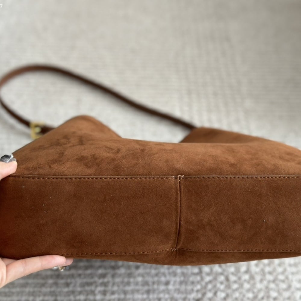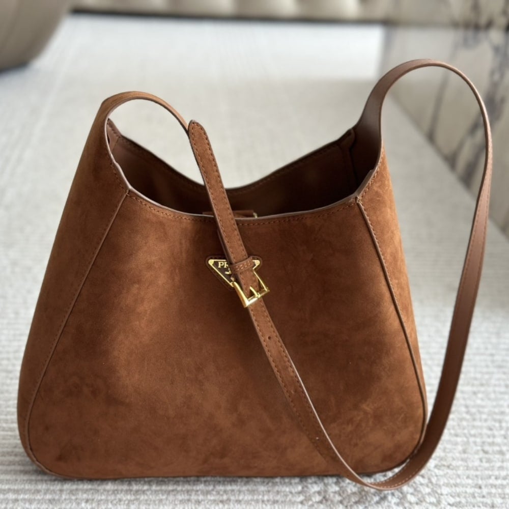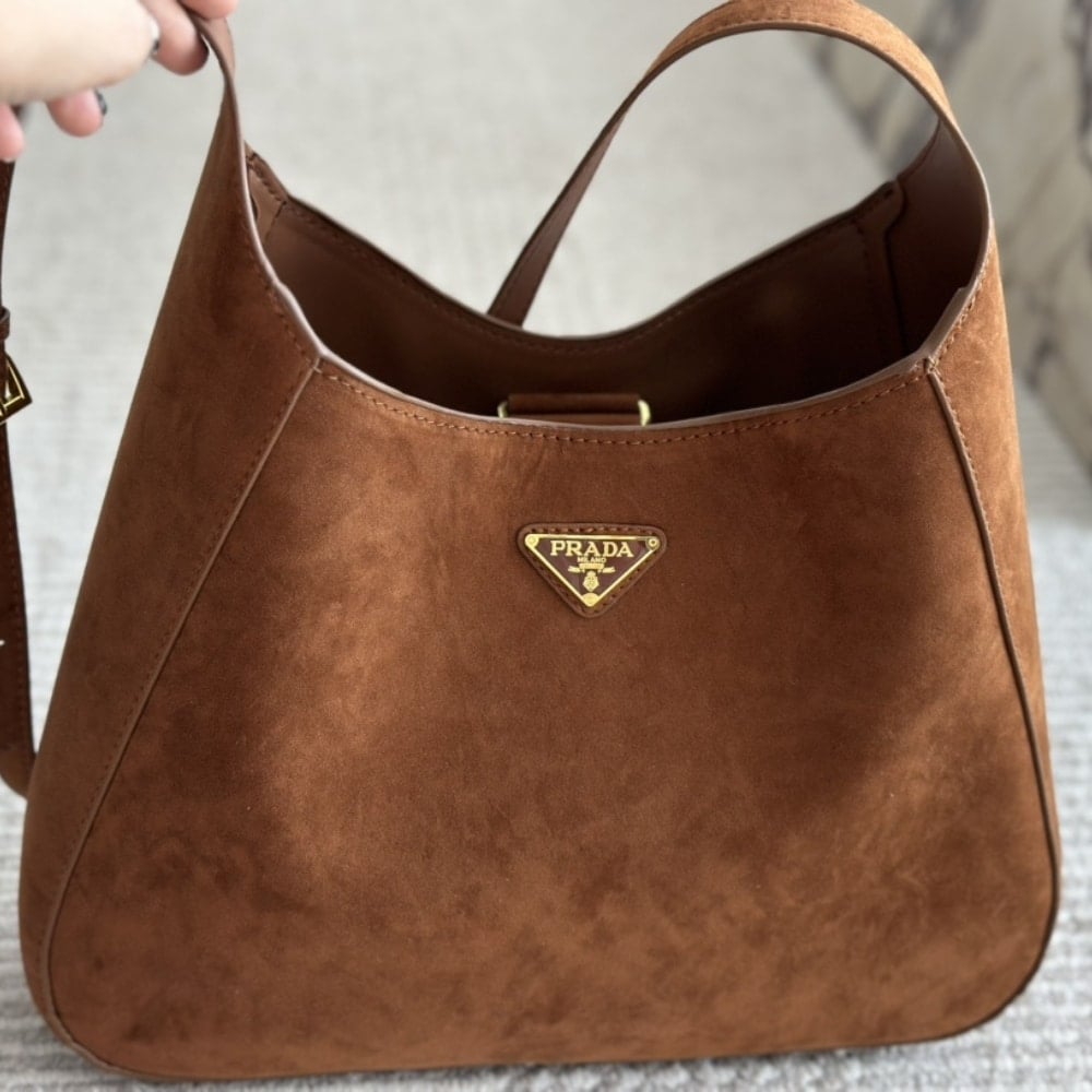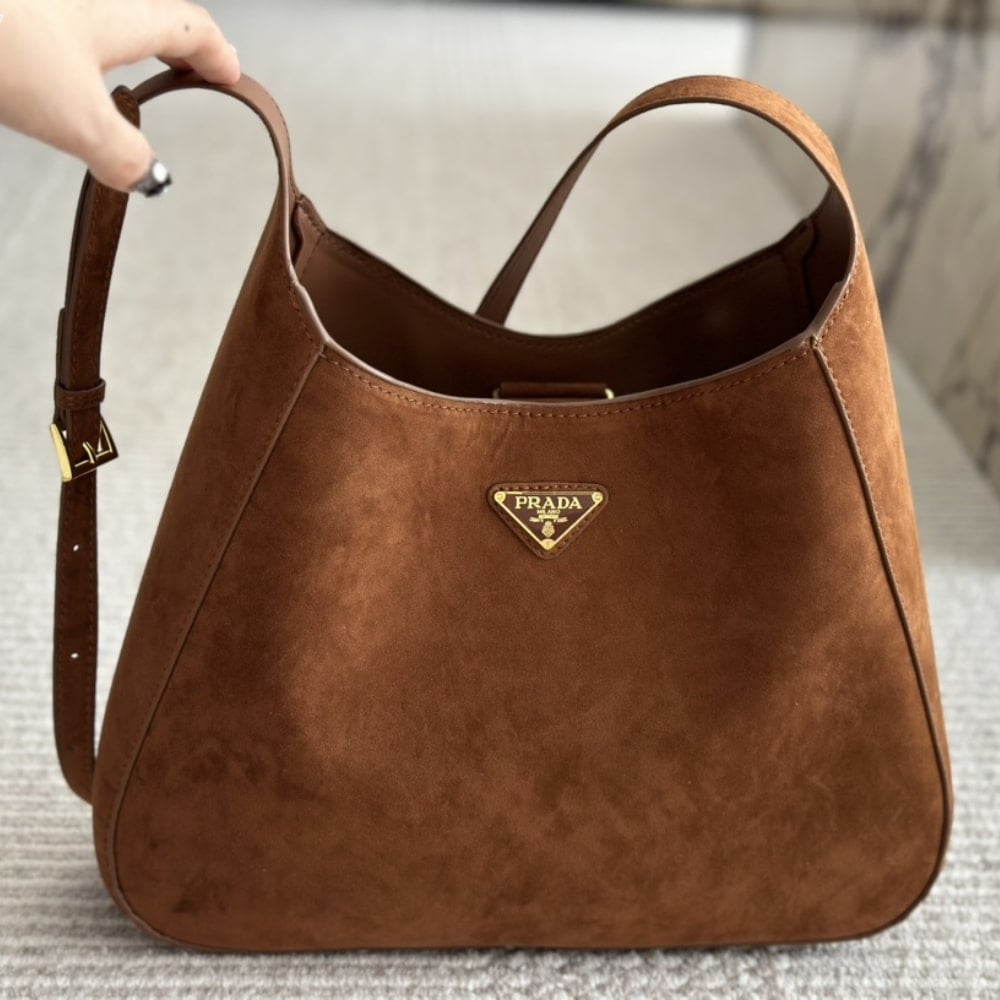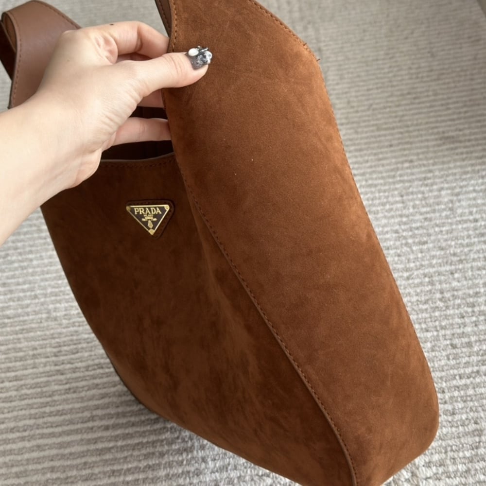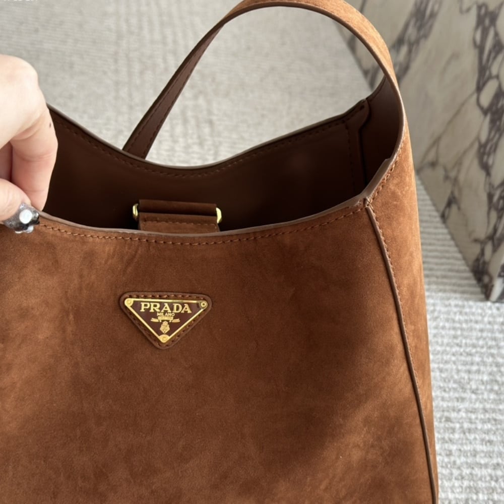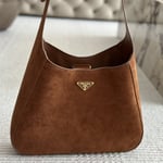 Prada Large Suede Shoulder Bag Cocoa Brown 34Cm