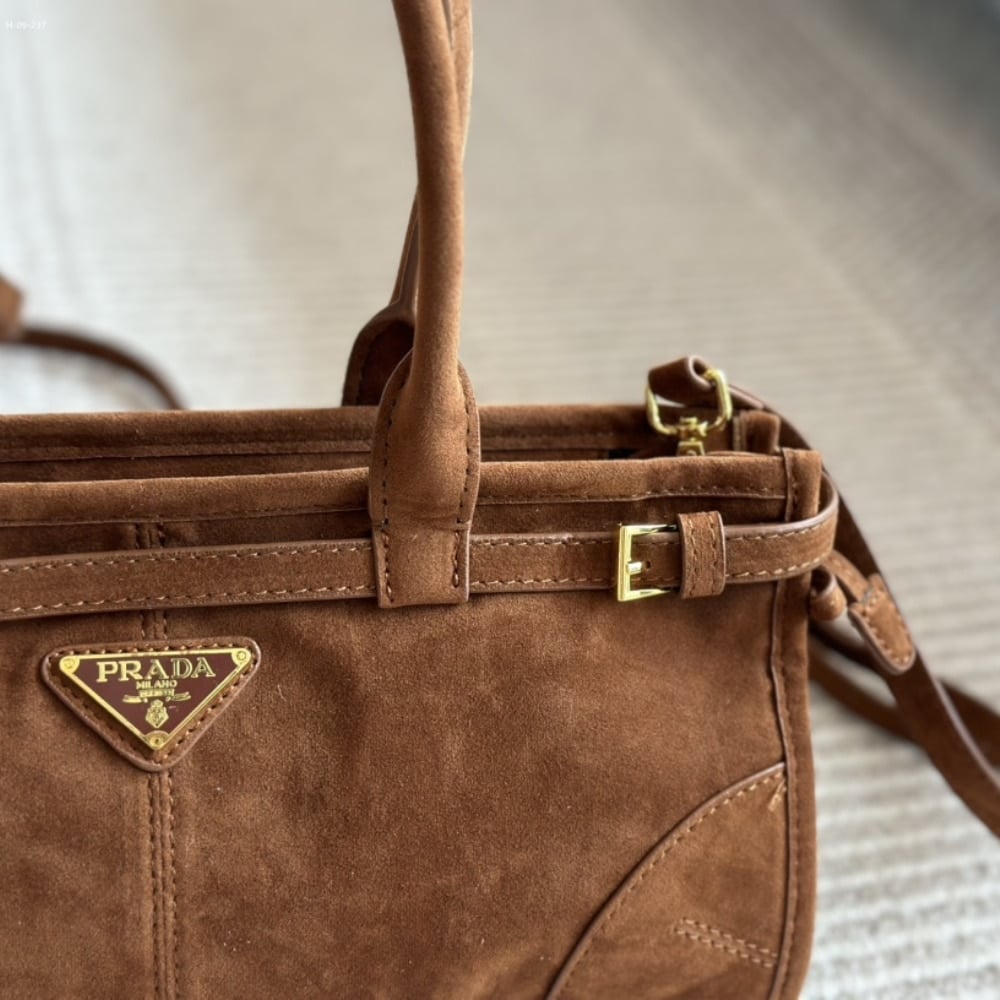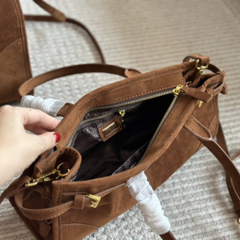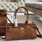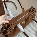 Prada Medium Suede Handbag Cocoa Brown 32Cm