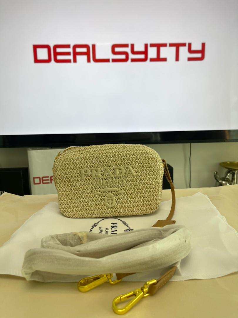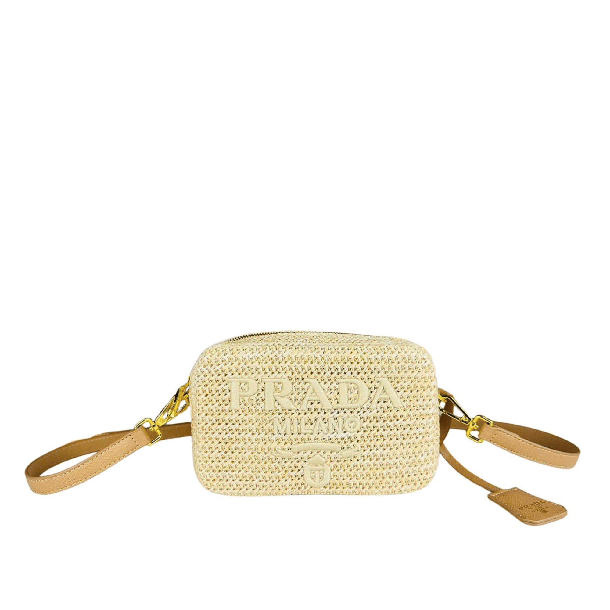 Prada Raffia Crochet Shoulder Bag Natural 20Cm