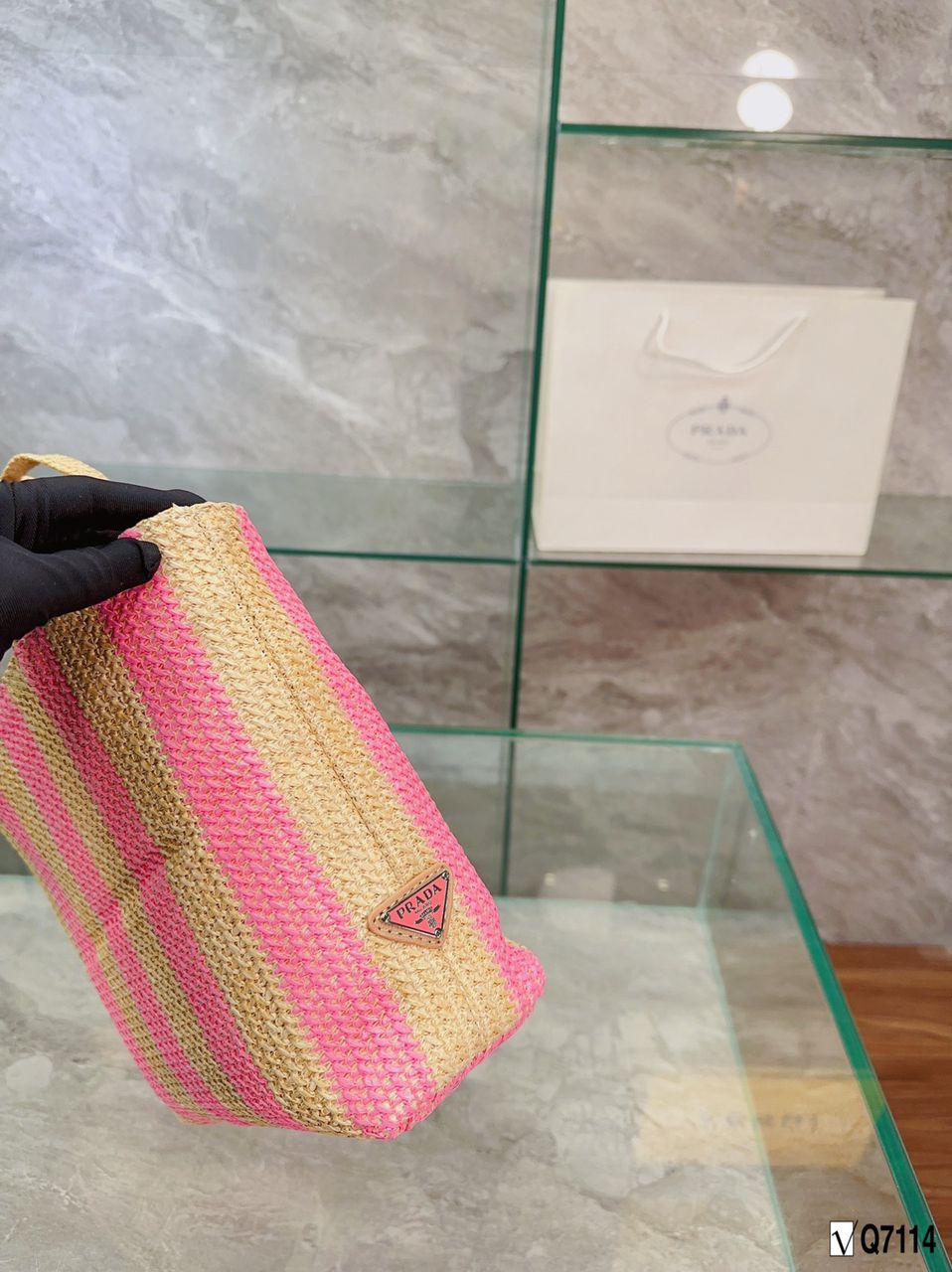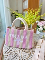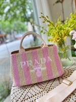 Prada Natural Crochet Logo Tote Bag Beach Bag 38 cm
