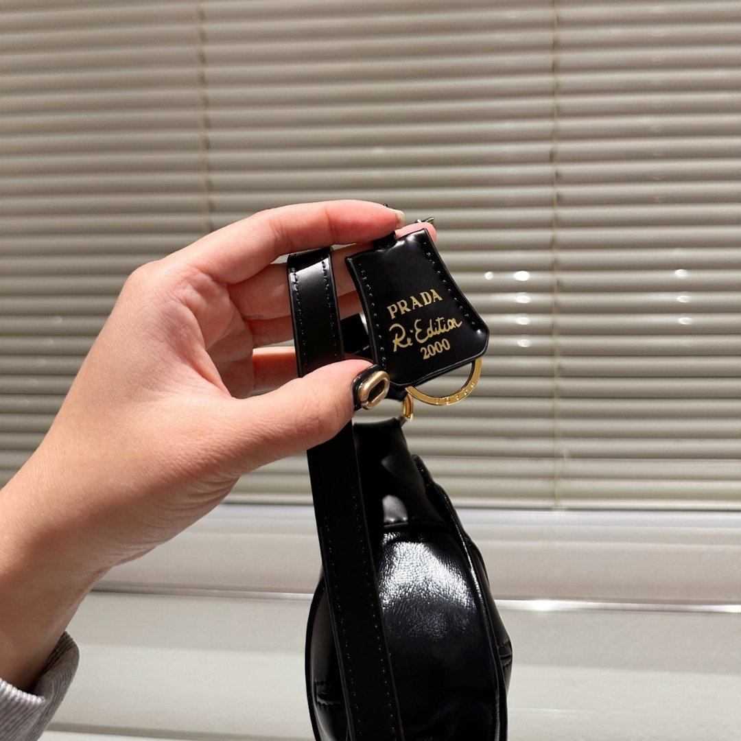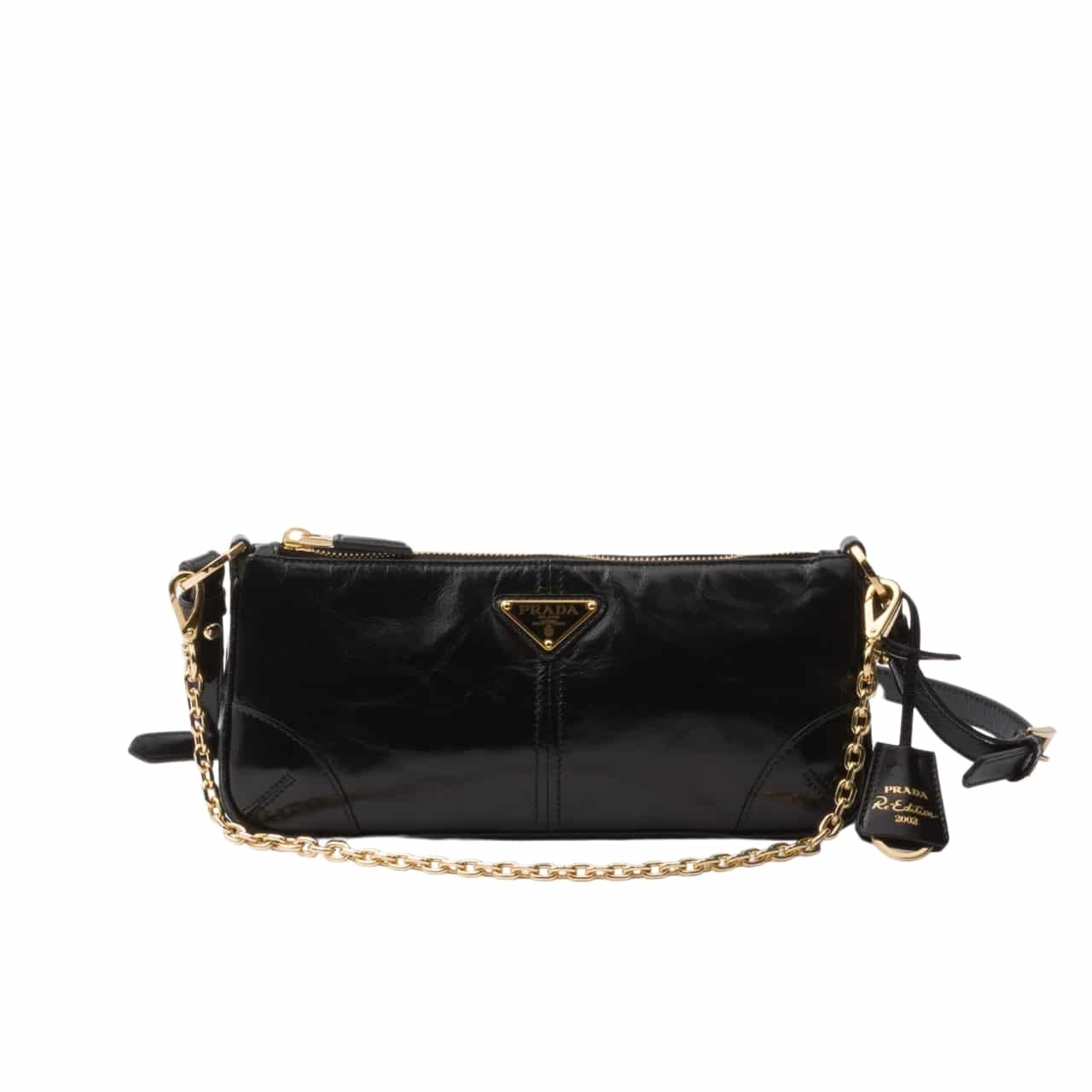 Prada Re Edition 2002 Leather Shoulder Bag Black 23Cm
