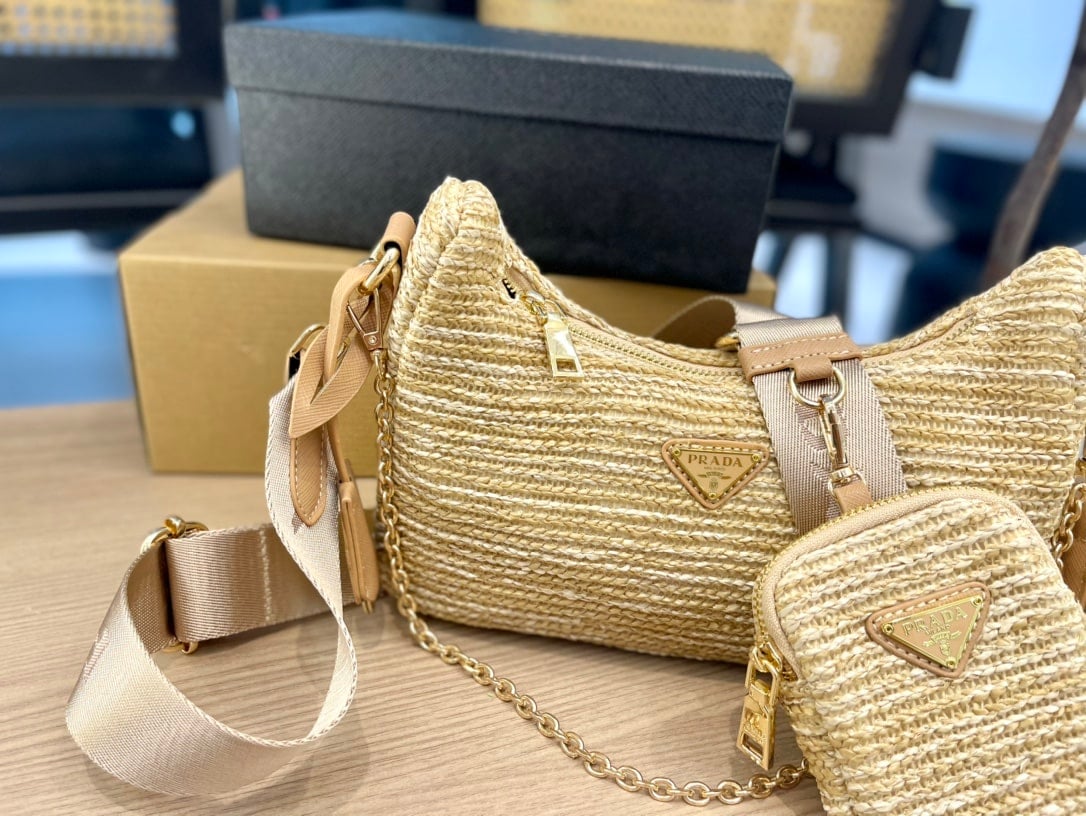 Prada Re-Edition 2005 Raffia Bag Tan