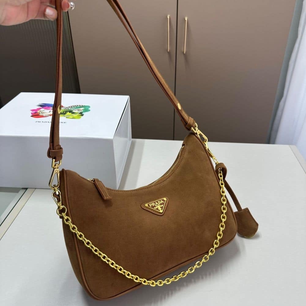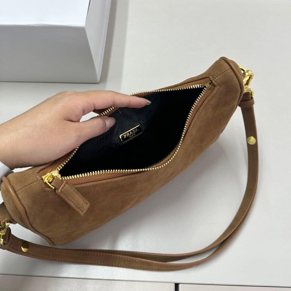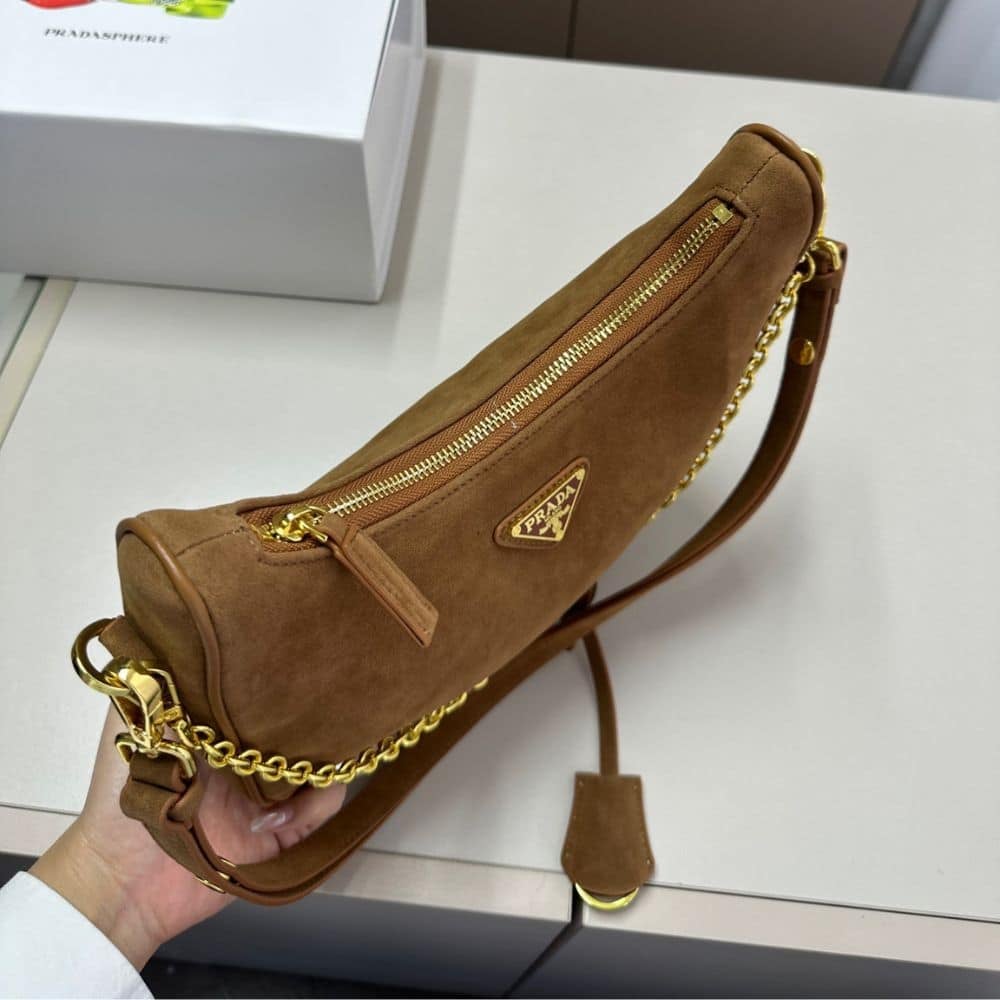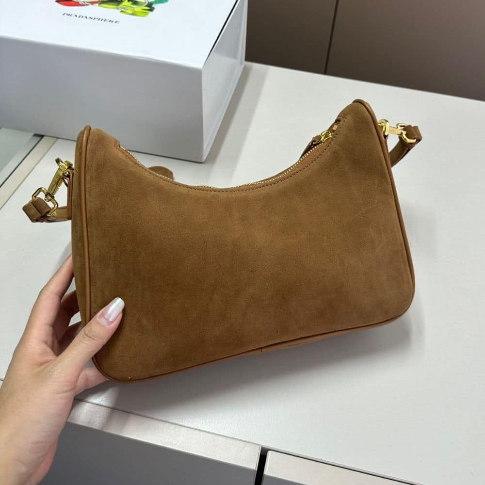 Prada Re Edition Mini Suede Shoulder Bag Brown 28Cm