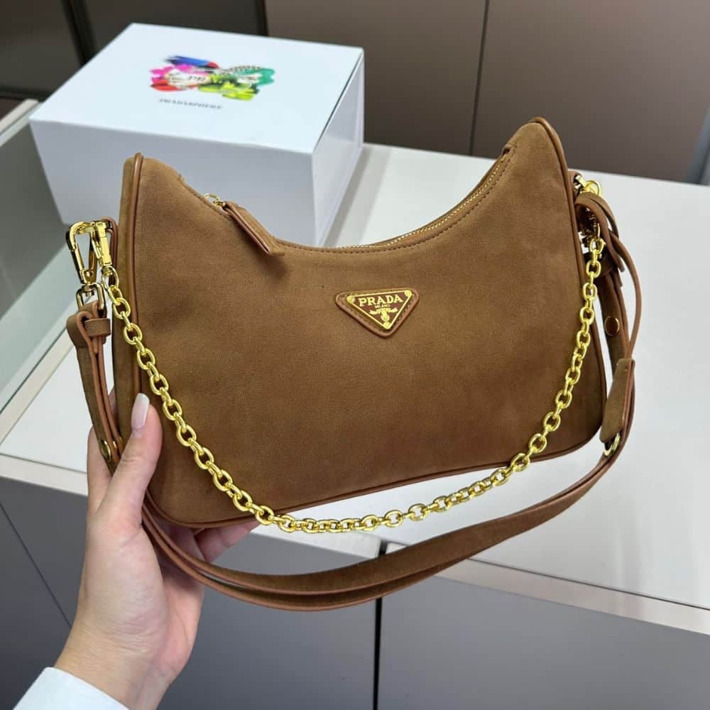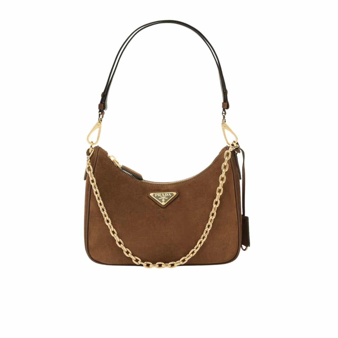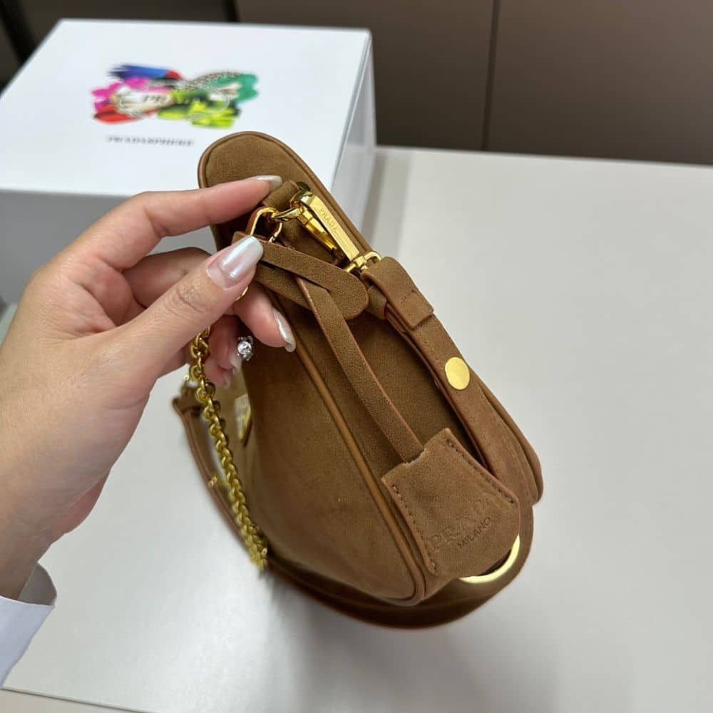 Prada Re Edition Mini Suede Shoulder Bag Brown 28Cm