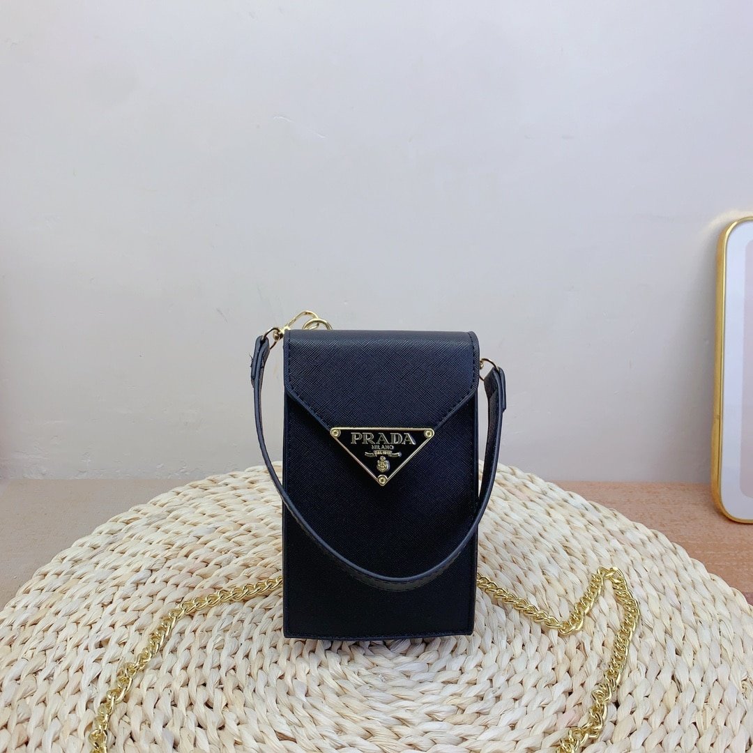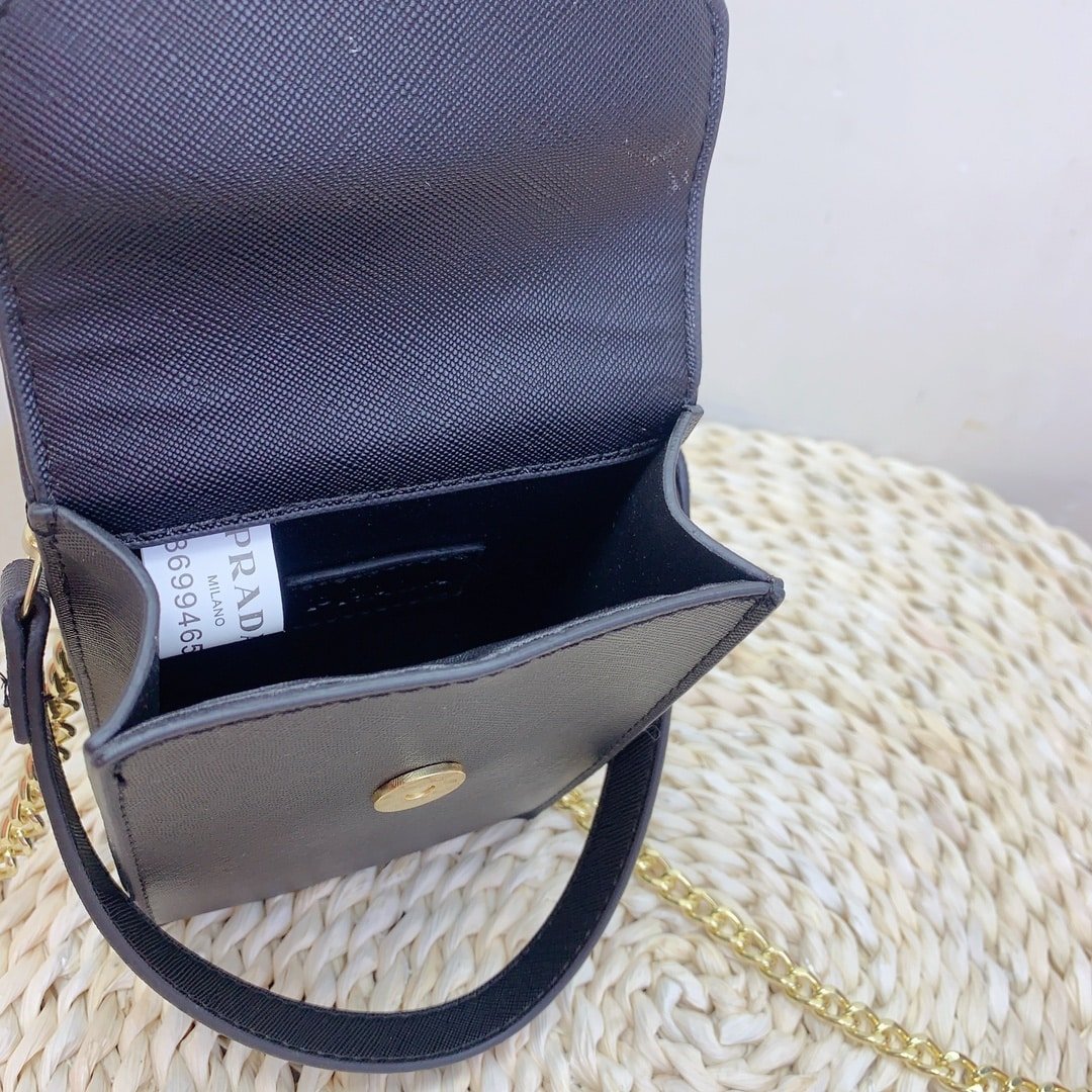 Prada Saffiano Leather Airpod Holder Black 17Cm
