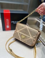 Prada Satin Crystal Mini Bag Gold 20Cm