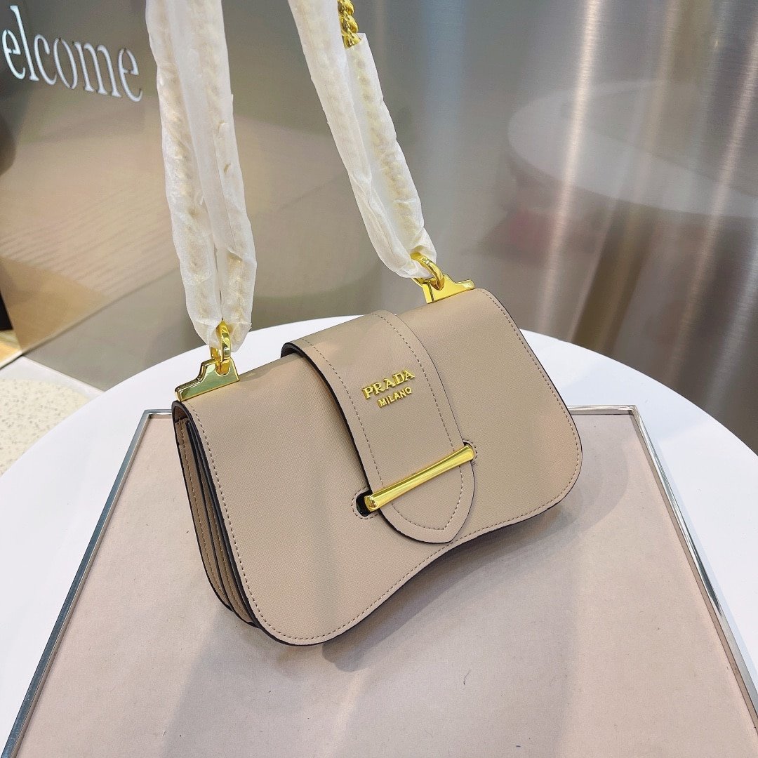 Prada Sidonie Leather Shoulder Bag In Neutral 24Cm