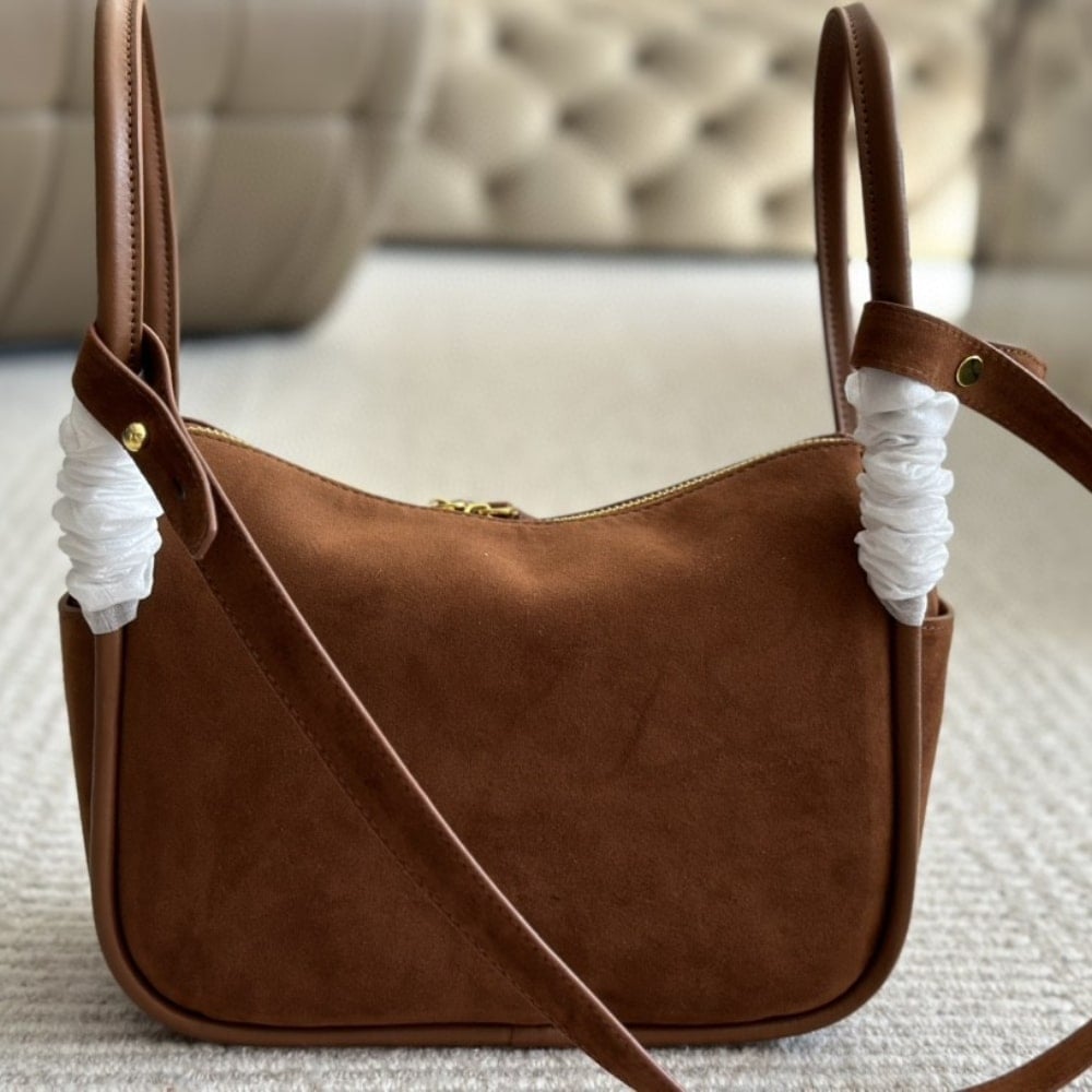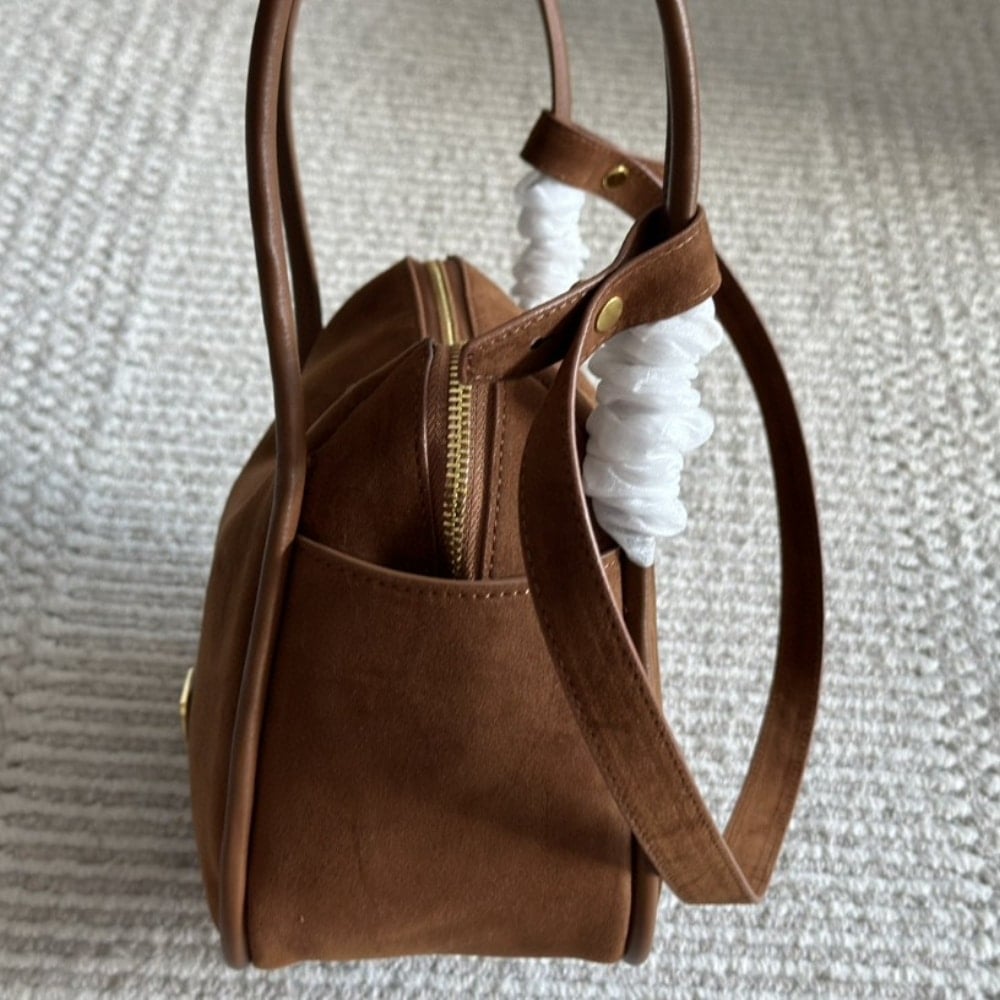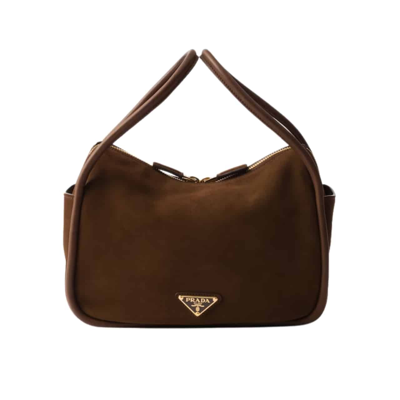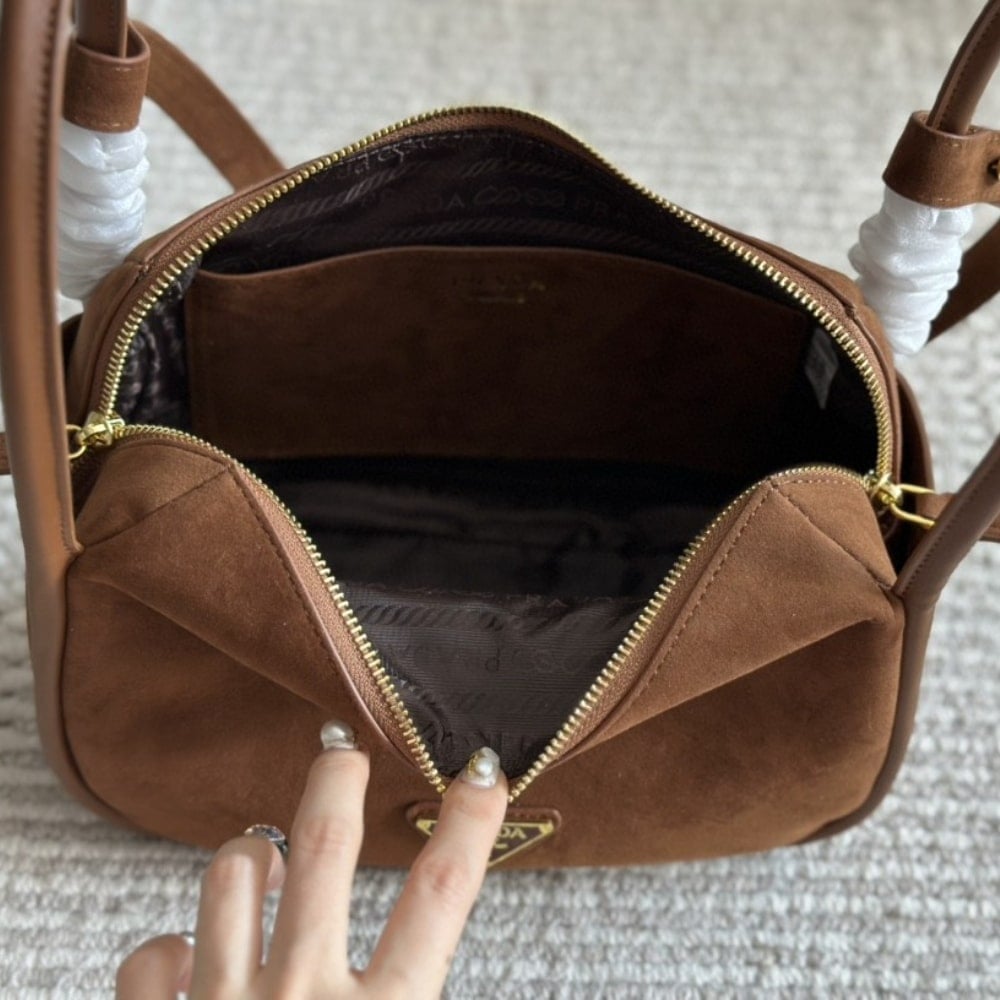 Prada Suede Hand Bag Cocoa Brown 26Cm